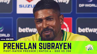 Prenelan Subrayen returned to haunt his former team Durban’s Super Giants with an inspired new-ball spell for Joburg Super Kings in Match 6 of Betway SA20 Season 4. Hear Subrayen's post-match thoughts from Kingsmead... Betway SA20 Season 4: 26 Dec 2025 to 25 Jan 2026! 🎟 GET YOUR TICKETS NOW: https://sa20.mobi/Season4Tickets Thanks for watching our video! Hit the SUBSCRIBE button to tune into Incredible T20 cricket action: The latest SA20 news, incredible moments, season highlights, post-match press conferences, player interviews and profiles, commentary, and more. Stay on top of every thrilling Betway SA20 Season 4 moment: 🌐 Website ► https://www.sa20.co.za 📧 Newsletter ► https://sa20.mobi/EmailUpdates 👍 Facebook ► @SA20League 📸 Instagram ► @sa20_league 🐦 X (Twitter) ► @SA20_League 🎵 TikTok ► @sa20_league Subscribe now and never miss: match highlights, player features, press conferences, exclusive series, action-packed moments, straight to your feed. #BetwaySA20 #WelcomeToIncredible #SA20 #T20Cricket #CricketHighlights #CricketFans #prenelansubrayen #joburgsuperkings #jsk #kingsmead #dsgvjsk #playerofthematch #spinbowling #season4 #match6