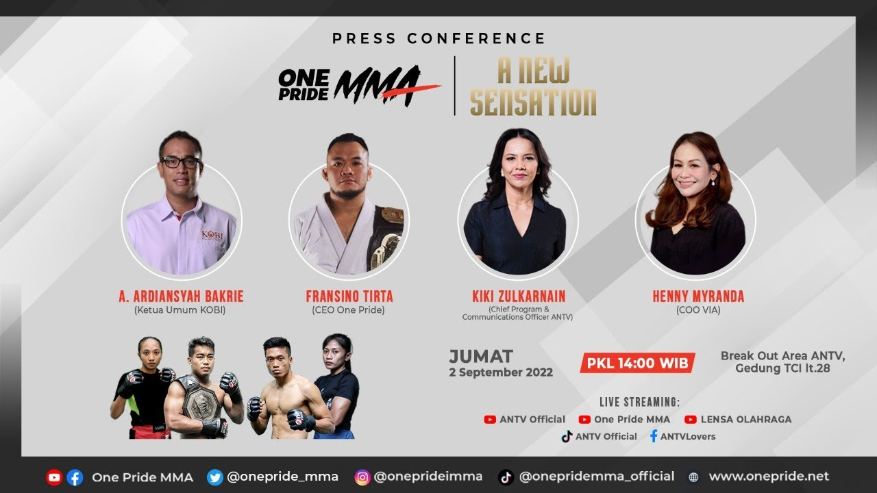 Saksikan Live Streaming Press Conference One Pride MMA FN 62 pada hari Jumat, 2 September 2022 Pk. 14.00 WIB hanya di tvOne.