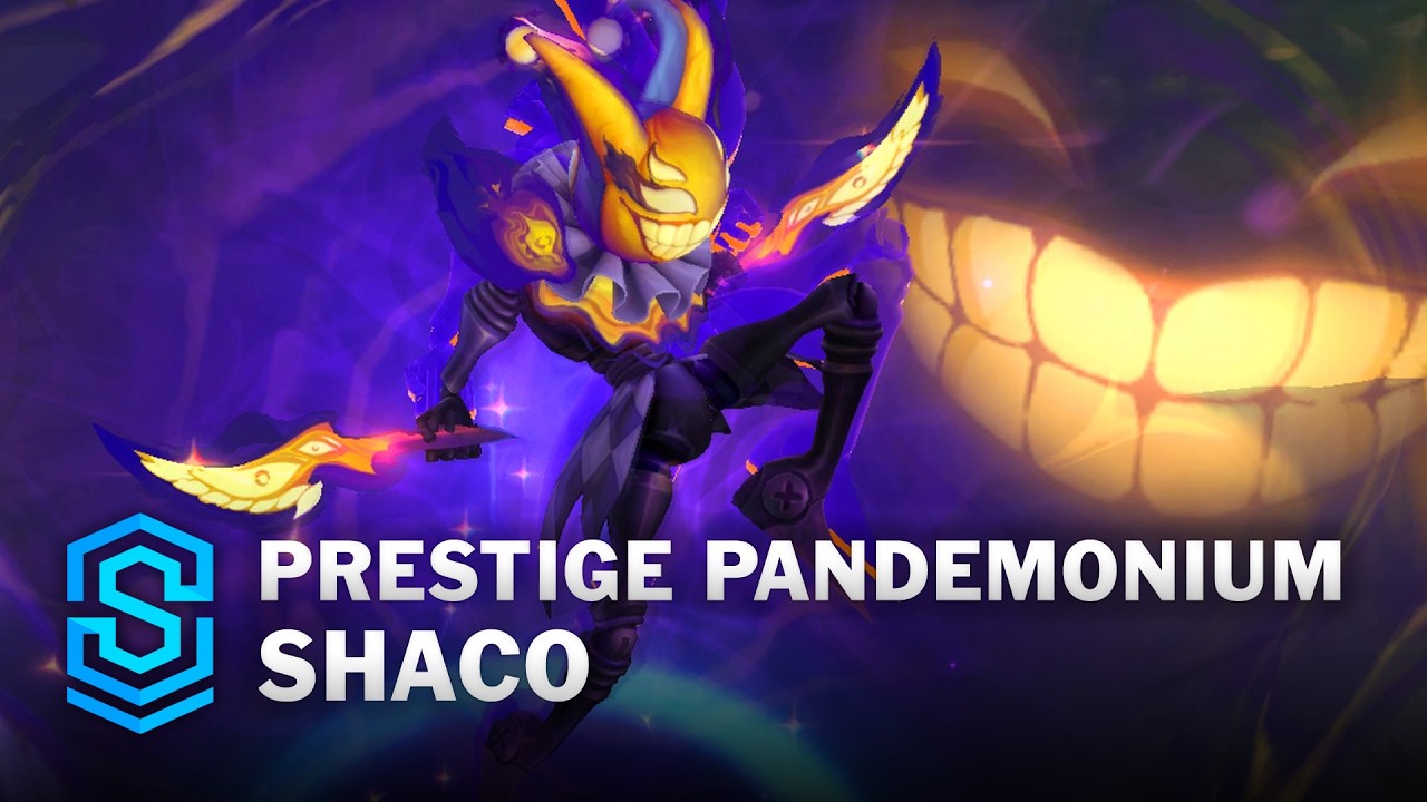 This is a teaser spotlight of Prestige Pandemonium Shaco with ingame gameplay! Purchase RP here (Amazon Affiliate - NA): https://amzn.to/2qZ3Bmv Price: Battle Pass Skin name is CONFIRMED as Prestige Pandemonium Shaco, particles & SFX may not be final. Check out the other skins in this cycle. Full Skin Spotlight will be released in the near future which will go more indepth. Feel Free to Follow me on Twitter as well: https://twitter.com/SkinSpotlights Facebook for all you FB Users who want to keep upto date: https://www.facebook.com/Skinspotlights Please feel free to subscribe for more Skin Spotlights to stay upto date with new skins about to be released!