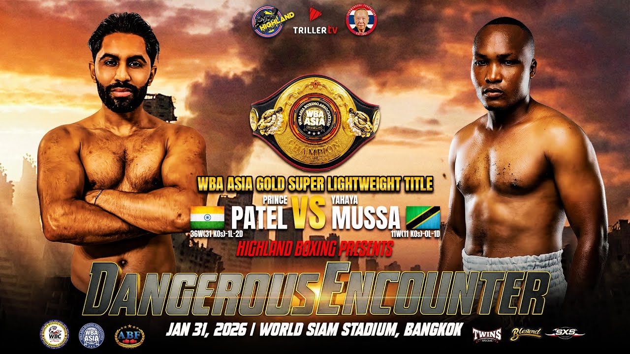 Highland Naris Boxing Promotions presents Dangerous Encounter January 31, 2026 | World Siam Stadium, Bangkok A championship clash for the WBA Asia Gold Super Lightweight Title as Prince Patel takes on Yahaya Mussa in a high-stakes international showdown. Pride, power, and gold are on the line as both fighters step into the ring ready to make history. Expect a hard-fought battle, intense exchanges, and a night of world-class boxing on a big stage. #PrincePatel #YahayaMussa #WBAAsia #SuperLightweight #GoldTitle #TitleFight #DangerousEncounter #HighlandNarisBoxing #Boxing #ChampionshipFight #FightNight #BangkokBoxing #WorldSiamStadium #ProBoxing #InternationalBoxing