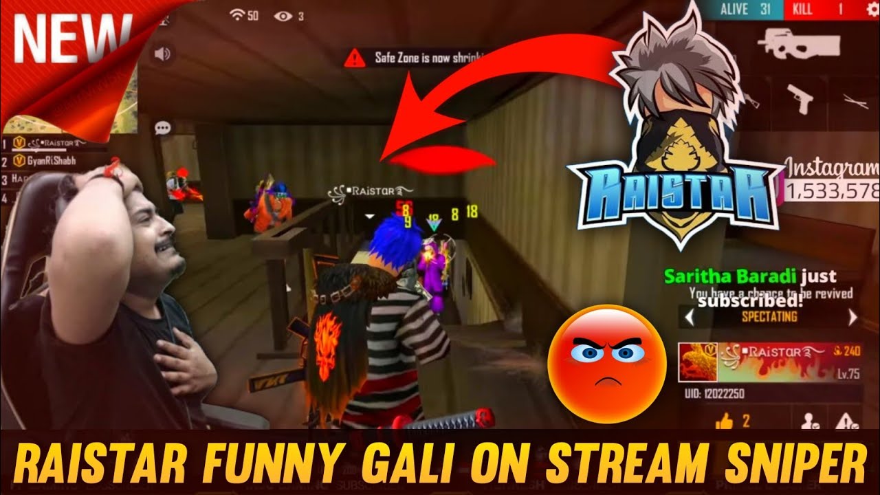 Raistar Funny Gali On Stream Sniper π€π‘ Raistar Funny Moments On GyanGaming Live - Garena Free Fire