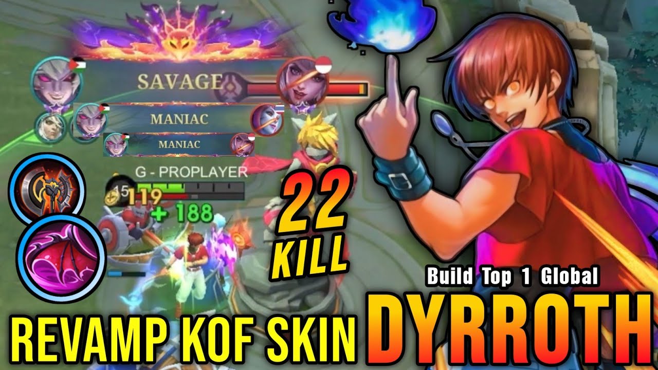 SAVAGE & MANIAC!! Dyrroth Revamp KOF Skin Insane 22 Kills!! - Build Top 1 Global Dyrroth ~ MLBB