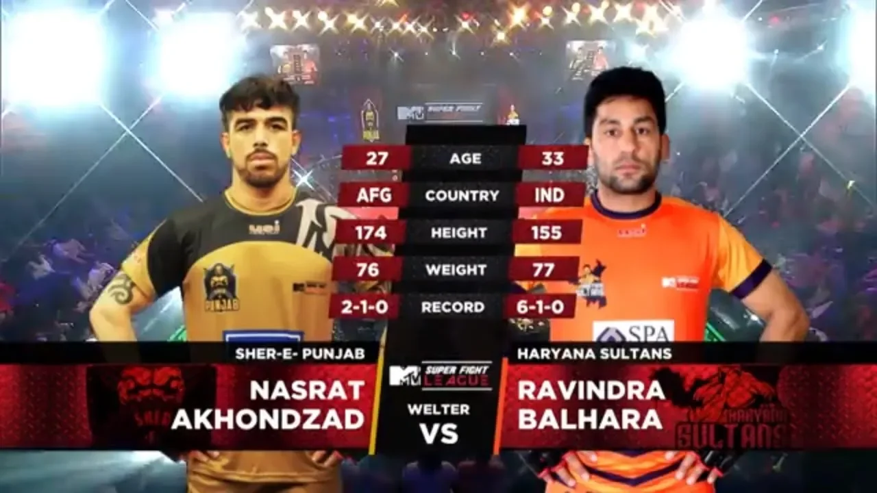 MTV Super Fight League Season II. Do not miss out the super exciting fight between welterweights Nasrat Akhondzad and Ravindra Balhara, Sher-E-Punjab Vs Haryana Sultans. Super Fight League is the world’s 1st and only mixed martial arts league. Our management’s out of the box thinking led to the introduction of MMA in a league format, which has never been done before by any combat sports organization. Subscribe our channel for all the latest updates. Website: http://www.superfightleague.com/ Facebook: https://www.facebook.com/SuperFightLeague/ Twitter: https://twitter.com/TheFightLeague Instagram: https://www.instagram.com/superfightleague/ #Fight #FightLeague #Fighting #SFL #Youtube #MTV #MMA #IndianMMA