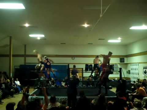 Elite Canadian Championship Wrestling (ECCW) - April 13, 2016 - Gold Rush Tour in 100 Mile House, BC EIGHT MAN ELIMINATION TAG TEAM MATCH: Scotty Mac, Bishop. Tony Baroni & Xavier Galaxy w/ Big Daddy Wayne vs. Shreddz, Mike Everest & The Voros Twins [Chris & Patrick]