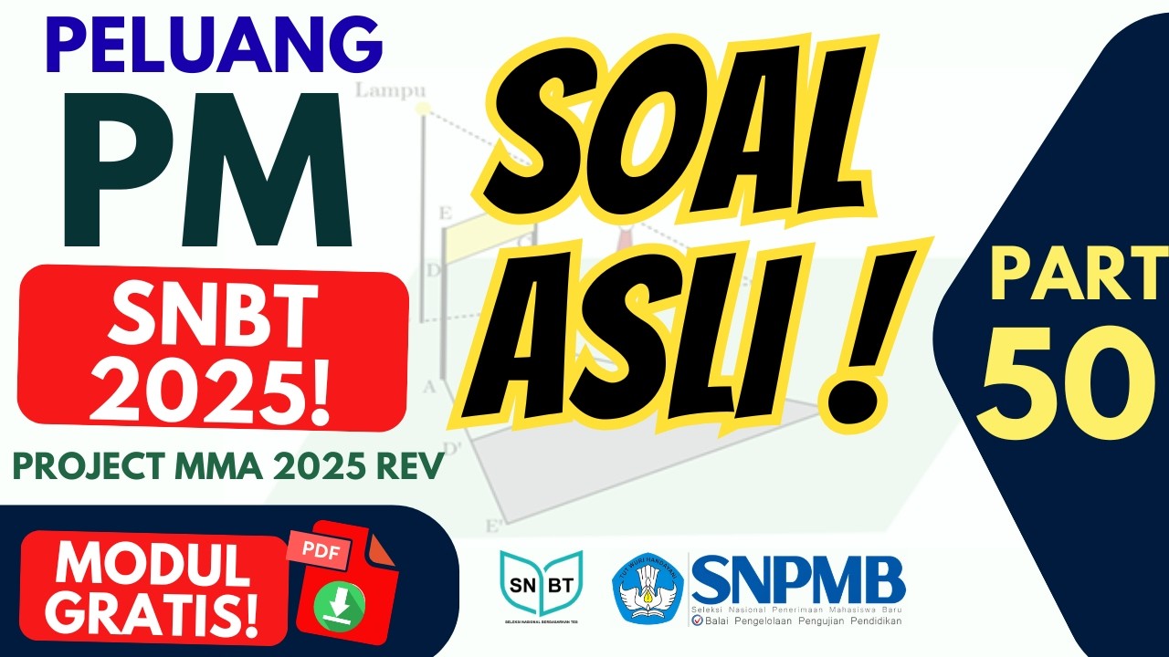 SOAL ASLI SNBT 2025 PM PENALARAN MATEMATIKA π₯ PELUANG, PERMUTASI, KOMBINASI (PART 48) Video ini membahas soal asli SNBT 2025 pada materi Penalaran Matematika (PM) khusus peluang, permutasi, dan kombinasi yang telah direvisi dan disusun ulang oleh Project MMA (Mangkuk Mie Ayam). Pembahasan dilakukan secara lengkap dan sistematis sehingga kamu bisa belajar tanpa les dan tetap memahami pola soal yang berpotensi muncul di SNBT 2026. Di video ini kamu akan belajar: β Pola soal peluang SNBT β Strategi cepat permutasi β Teknik kombinasi yang sering menjebak β Cara membaca soal PM berbasis analisis Semua soal dibahas runtut dan detail agar kamu benar-benar paham konsepnya. π Download Modul: Video ini cocok untuk: - Latihan intensif SNBT 2026 - Review soal asli SNBT 2025 - Menguatkan konsep kombinatorik PM Tonton sampai selesai agar benar-benar siap menghadapi UTBK SNBT 2026. π₯ Dukung channel ini agar terus upload pembahasan SNBT lengkap: Subscribe untuk pembahasan Try Out terbaru setiap minggu. #SNBT2026 #PMSNBT #PenalaranMatematika #PeluangSNBT #PermutasiKombinasi Untuk diingat : "Diberkatilah orang yang mengandalkan Tuhan, yang menaruh harapannya pada Tuhan!" (Yeremia 17:7, TB)