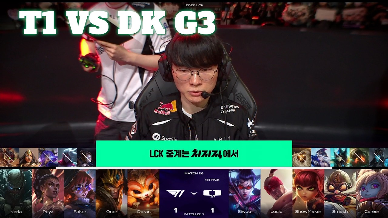 Picks & Bans: 0:00 Game Start: 9:28 Week 3 Day 3 - T1 vs DK G3 S16 LCK 2026 Rounds 1-2 - T1 vs Dplus Kia Game 3 lol eSports LCK 2026 Rounds 1-2. LoL eSports S16 LCK 2026 Rounds 1-2 - T1 vs DK League of Legends LCK 2026 Rounds 1-2 T1 vs Dplus Kia VOD 1080p Full HD. First match of the day - T1 vs Dplus Kia Best of 5 Game 3. T1 vs Dplus Kia G3 Week 3 Day 3 full game in HD 1080p. T1 Line-up: Doran - Top Gnar Oner - Jungle Jarvan IV Faker - Mid Aurora Peyz - ADC Mel Keria - Support Pyke Dplus Kia Line-up: Siwoo - Top Vayne Lucid - Jungle Lee Sin ShowMaker - Mid Annie Smash - ADC Corki Career - Support Poppy Patch: 26.6 - Season 16 Game date: 17.4.2026 | 4/17/2026 | April 17th 2026 Game place: LoL PARK - LCK Arena Casters: Atlus and Aux Watch all LoL esports games on-demand and spoiler-free on our platform: https://eventvods.com Support us on Patreon: http://bit.ly/1O8exUH Subscribe to our YouTube channel for more League of Legends esports content: http://www.youtube.com/subscription_center?add_user=loleventvods Follow us on Twitter: https://twitter.com/Eventvods & Facebook: https://www.facebook.com/eventvods