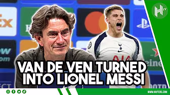Thomas Frank reviews Tottenham's 4-0 win over Copenhagen. He was full of praise for Micky van de Ven's solo goal. TIMESTAMPS 0:00 intro 0:10 Micky Van de Ven turned into Lionel Messi. What a goal. 0:40 I understand why Johnson got sent off. The still footage makes it look bad, it was not reckless. I think it was harsh. 1:24 I think it was a step forward for us attacking wise. I like what I saw from Brennan, great assist from Xavi. Liked Wilson too and Kolo-Muani was a handful. Could have scored 1 or 2. More to come. 2:05 I didn’t say too much to Xavi, he wants to play. He saw the opportunity to play more. At 2-0 you don’t know how it will go. 2:33 Johnson has started 3 of the last 4. He played well against Everton. 3:03 I did not see Carragher’s comments, not much to say about pundits they need to say things about games. Easier to be a pundit than a manager. 4:36 That’s the beauty of football, players take initiative on their own. 5:10 Randal Kolo-Muani is not fully firing but he is a handful to play against. 5:44 It was important to bounce back from Chelsea loss 6:09 It was a step forward, in terms of how we want to play. The structure was good today. 6:42 We did not make the most of our chances in the first half. It could have been more difficult for us if we hadn’t made it 3-0. 7:45 I did not expect to win 4-0. Copenhagen are difficult to play against. 8:11 Jacob (Copenhagen coach) knows the game. He is calm and is super angry 8:45 They played some even games last season. They were big conclusions made after our game Saturday. 10:04 it was a step forward for Xavi today. @HaytersTV – Football Up Close. Visit our website: https://hayters.com/ We go behind the scenes with the biggest names in football to bring you interviews, training, news, live coverage, fans’ voices and funniest moments. If you love football, you’ll love Hayters TV. Subscribe now! Follow HaytersTV on social media - https://linktr.ee/HaytersTV #tottenham #championsleague #lionelmessi