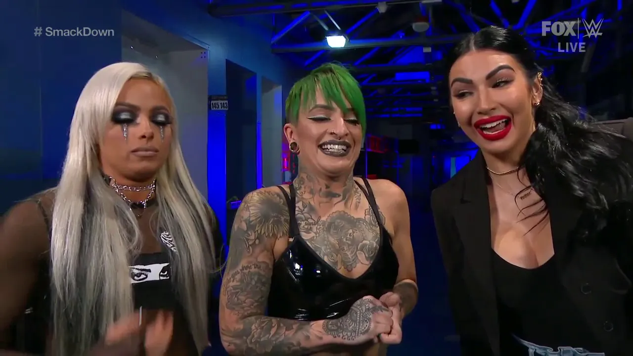 WWE SmackDown 08/01/21: Ruby Riott, Liv Morgan & Billie Kay Backstage Segment © 2021 WWE All Rights Reserved. Tags: AJ Lee, Aksana, Alexa Bliss, Alicia Fox, Alicia Taylor, Aliyah, Alundra Blayze, Asuka, Bayley, Becky Lynch, Beth Phoenix, Bianca Belair, Billie Kay, Brie Bella, Bull Nakano, Cameron, Candice LeRae, Candice Michelle, Carmella, Cathy Kelley, Charlotte Flair, Charly Caruso, Christy Hemme, Chyna, Cora Combs, Dakota Kai, Dana Brooke, Dawn Marie, Deonna Purrazzo, Eden, Ember Moon, Emma, Eva Marie, Eve Torres, Fabulous Moolah, Francine, Io Shirai, Isla Dawn, Ivory, Jaqueline, Jazz, Jessamyn Duke, Jillian Hall, Jinny, JoJo, Judy Grable, June Byers, Kairi Sane, Kaitlyn, Kay Kee Ray, Kayla Braxton, Kelly Kelly, Kharma, Killer Kelly, Lacey Evans, Lana, Layla, Lillain Garcia, Lita Liv Morgan, Luna Vachon, Mandy Rose, Maria Kanellis, Marina Shafir, Maryse, Maxine, Melina, Mia Yim, Michelle McCool, Mickie James, Mildred Burke, Miss Elizabeth, Molly Holly, , Naomi, Natalya, Nia Jax, Nikki Bella, Nikki Cross, Nina Samuels, Paige, Peyton Royce, Piper Niven, Renee Young, Rhea Ripley, Ronda Rousey, Rosa Mendes, Ruby Riott, Sable, Sarah Logan, Sarah Schreiber, Sasha Banks, Shayna Baszler, Sonya Deville, Stacy Keibler, Stephanie McMahon, Summer Rae, Sunny, Tamina, Taynara Conti, Tegan Nox, Terri Runnels, Tiffany, Toni Storm, Torrie Wilson, Trish Stratus, Vanessa Borne, Vickie Guerrero, Victoria, Wendi Richter, Xia Brooksdie, Xia Li & Zelina Vega