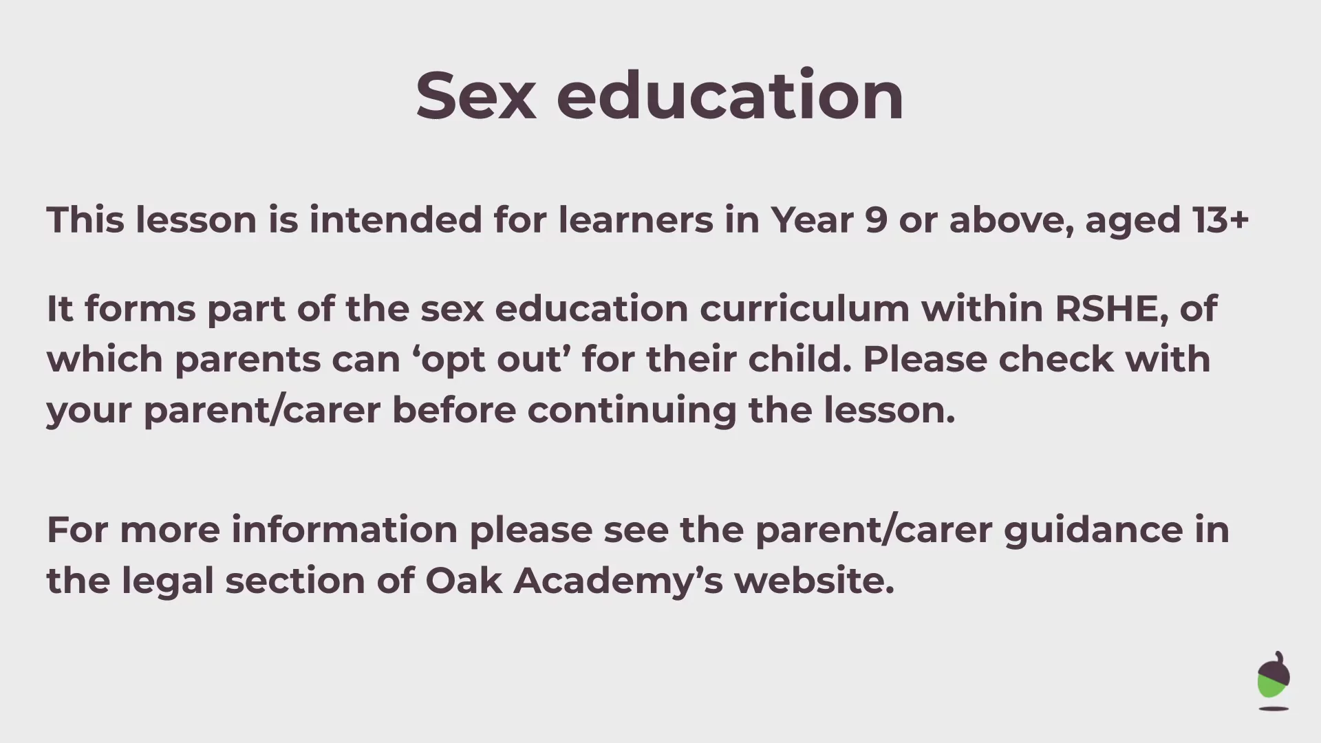 This lesson will focus on the concept of 'consent' and the law around sexual consent. Also, how consent (including sexual and other kinds) can be communicated and withdrawn.