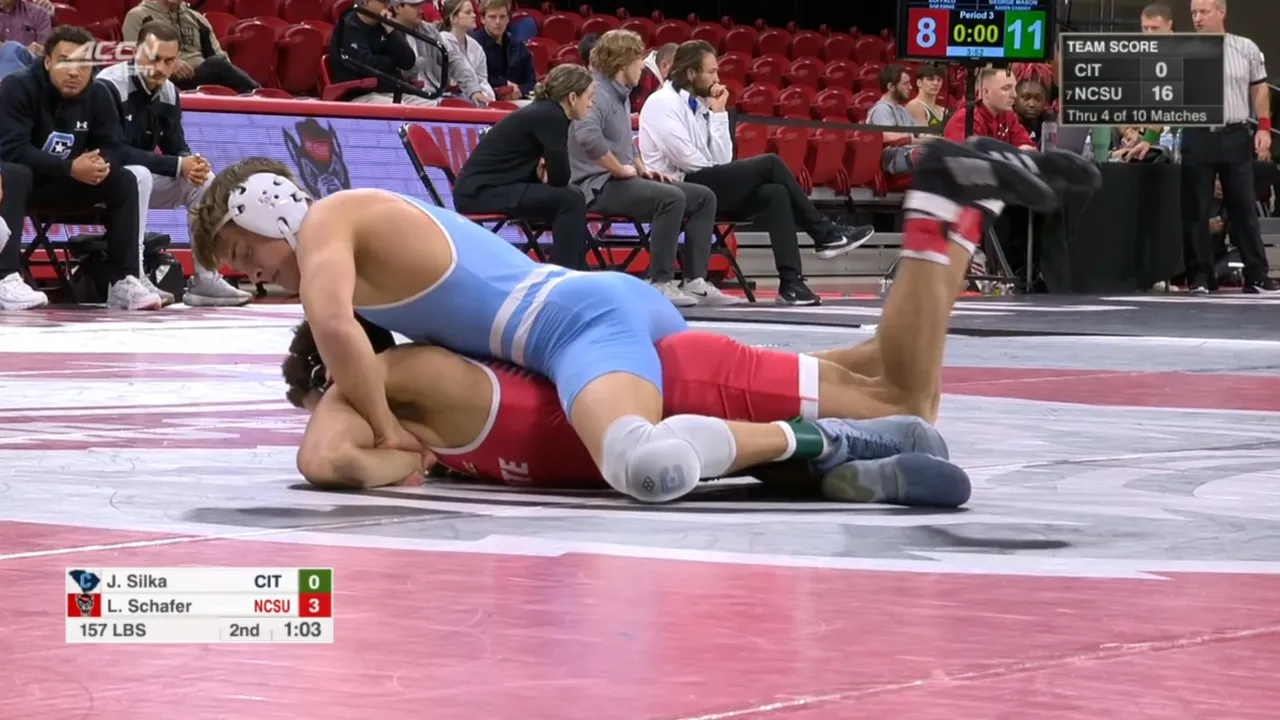2025/26 NC State vs Citadel wrestling dual 157lbs Jacob Silka (CIT) dec Latrell Schafer (NCST) I do not own this video, all credit/rights to ESPN/ACC