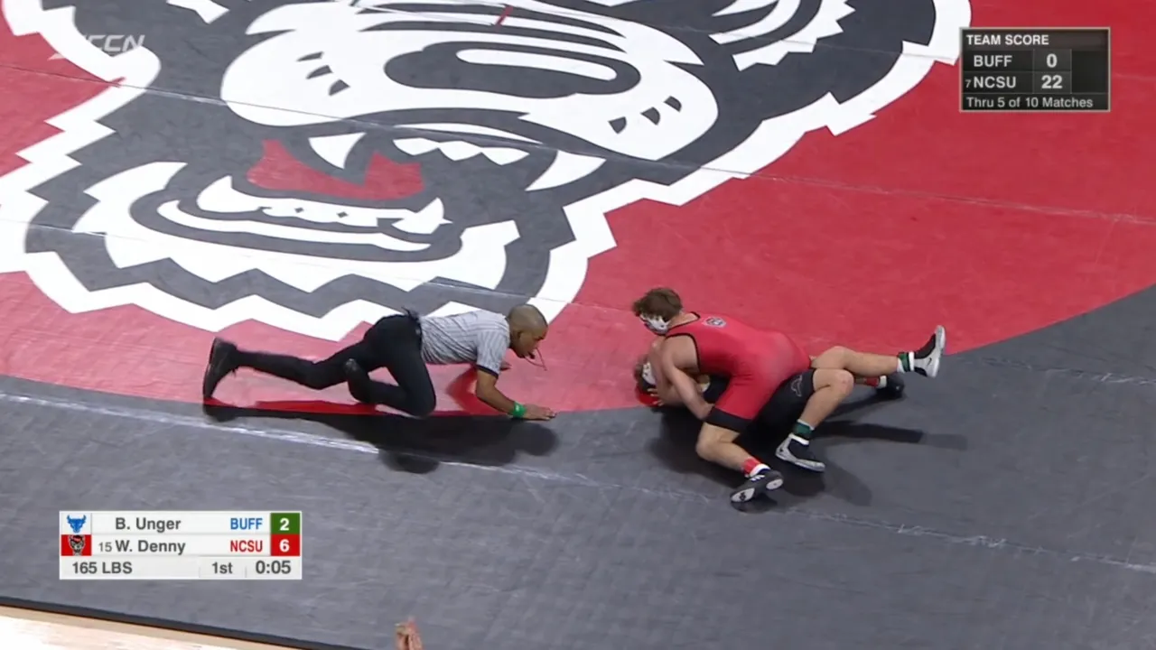 2025/26 NC State vs Buffalo wrestling dual 165lbs #15 Will Denny (NCST) fall Brady Unger (BUFF) I do not own this video, all credit/rights to ESPN/ACC