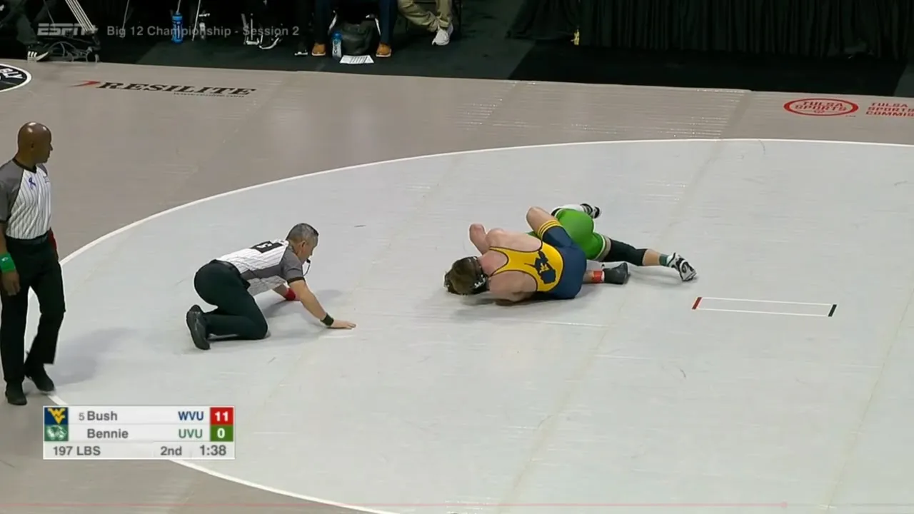2025 Big 12 Wrestling Championships 197lbs Ian Bush (WVU) tech fall Kael Bennie (UVU) I do not own this video, all credit/rights to ESPN/Big 12