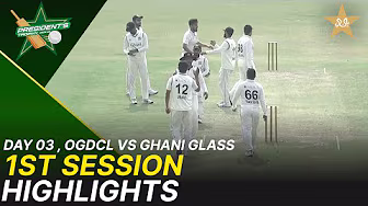 1st Session Highlights | OGDCL vs Ghani Glass | Day 3 | President's Trophy | 2025-26 | PCB | M2V1S #Presidentstrophy #ogdclvsghaniglass #pcb Buy official Pakistan Cricket merchandise: https://shop.pcb.com.pk/ Welcome to the official page of Pakistan Cricket Board. Get all your Pakistan Cricket updates here! You can access exclusive player interviews, match highlights, practice sessions, press conferences, coaching videos and other beyond-the-boundary content. Subscribe to our YouTube channel: https://bit.ly/SubscribePakistanCricket Like us on Facebook: / pakistancricketboard Visit our website: https://www.pcb.com.pk/