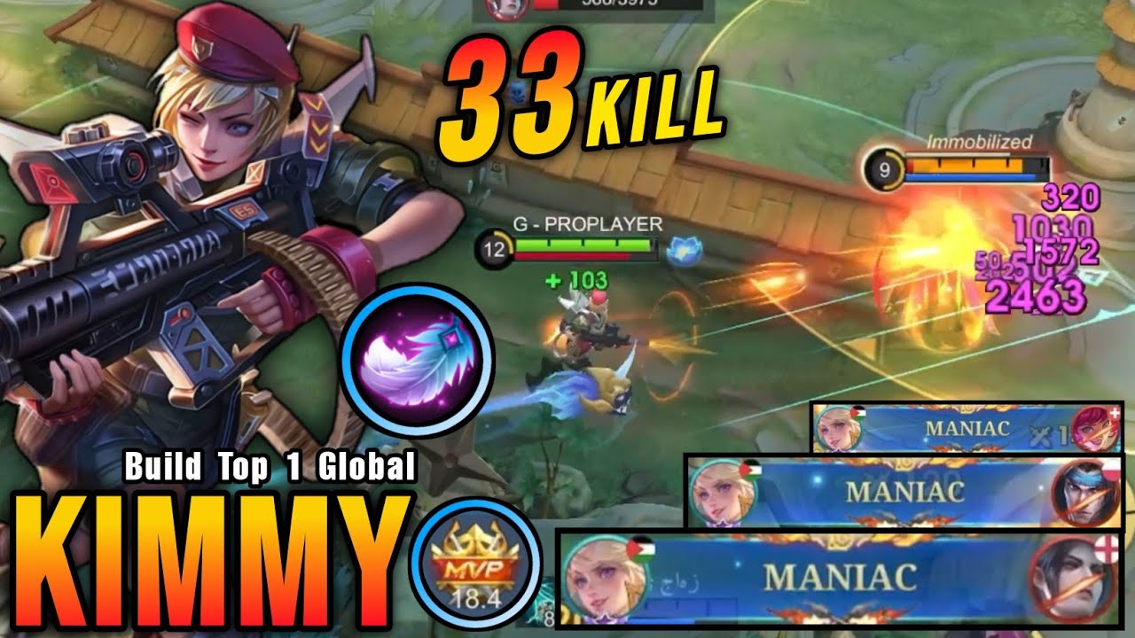 33 Kills + 3x MANIAC!! Kimmy Monster Gold Laner (NEW BUILD) - Build Top 1 Global Kimmy ~ MLBB