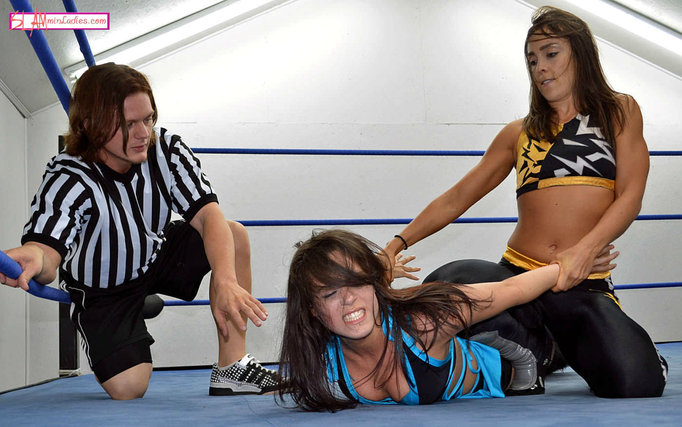 Young upstart Bacardi takes on seasoned vet Del Rey in this 1 fall match-up. Sara does her best to keep Bacardi off-balance and on the defensive by targeting her left arm with Armbars, Wristlocks and Half Nelsons. The two go back and forth, with both ladies unleashing high-impact maneuvers and scoring numerous 2 counts. Sara gets a near fall after working over Bacardi in the corner and the youngster almost scores a pinfall when she rolls out of a Crossface and pins Sara’s shoulders down. The end comes when one wrestler almost puts out her opponent with a breath-draining Bodyscissors, but her rugged opponent displays her impressive strength by standing up, with her foe’s legs wrapped around her, and turns it into an elevated reverse Full Nelson that forces her opponent to tap out and end the hard-fought battle.