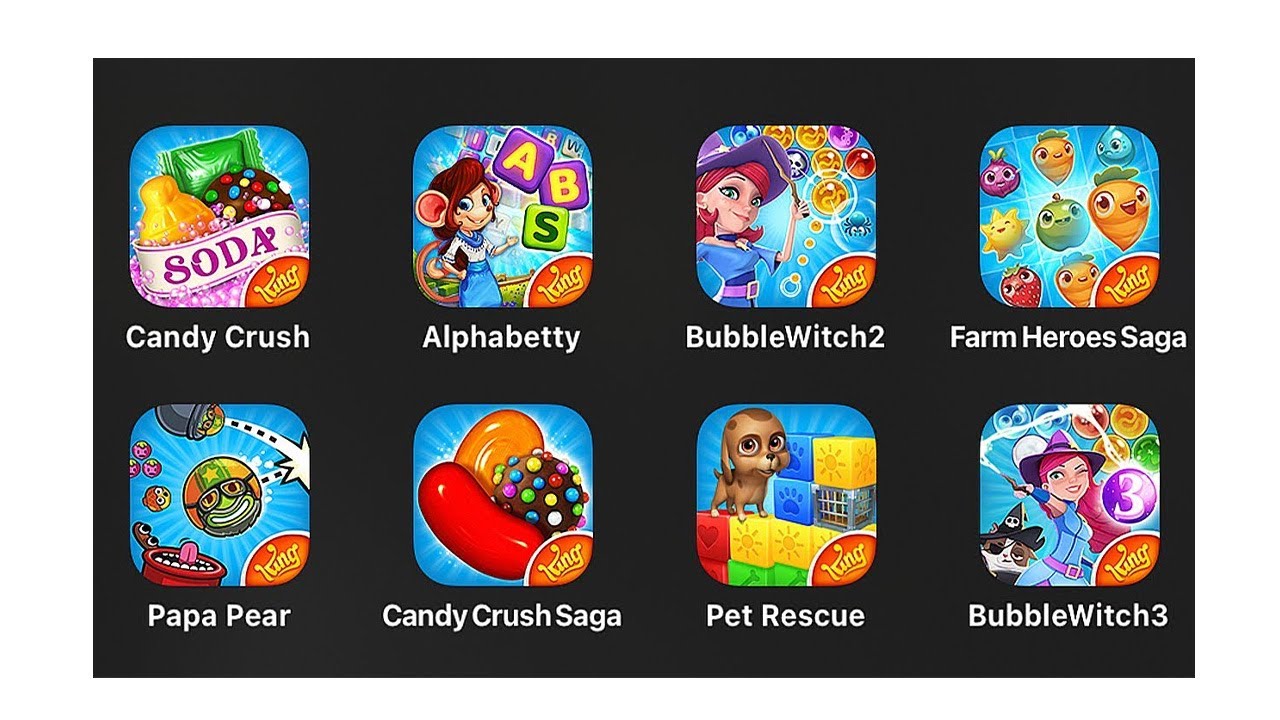 Candy Crush Soda,Bubble Witch 2,Farm Heroes Saga,Papa Pear,Pet Rescue Saga,Farm Heroes Super Saga