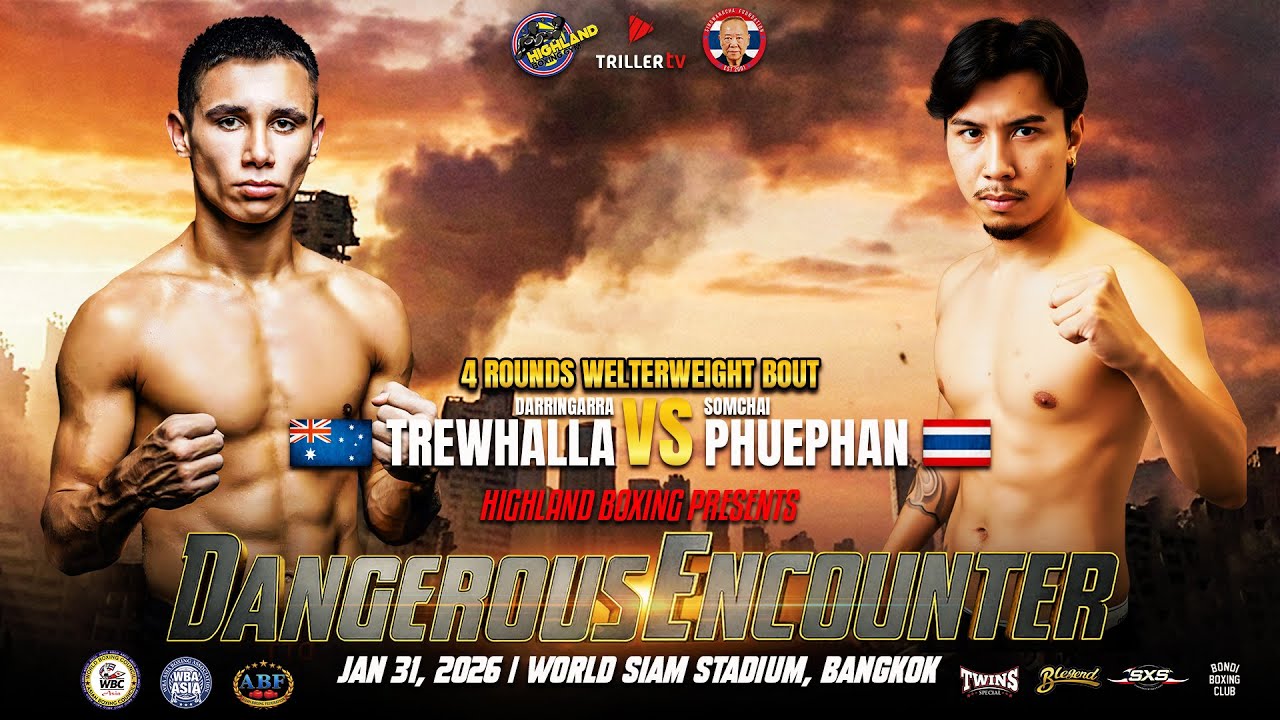 Highland Naris Boxing Promotions presents Dangerous Encounter January 31, 2026 | World Siam Stadium, Bangkok A fast-paced 4-round welterweight showdown as Darringarra Trewhalla takes on Somchai Phuephan in an exciting international clash. Speed, power, and determination collide as both fighters look to impose their will inside the ring. Expect sharp exchanges, relentless action, and a thrilling fight from the opening bell to the final round. #DarringarraTrewhalla #SomchaiPhuephan #Welterweight #4Rounds #DangerousEncounter #HighlandNarisBoxing #Boxing #FightNight #BangkokBoxing #WorldSiamStadium #ProBoxing #InternationalBoxing