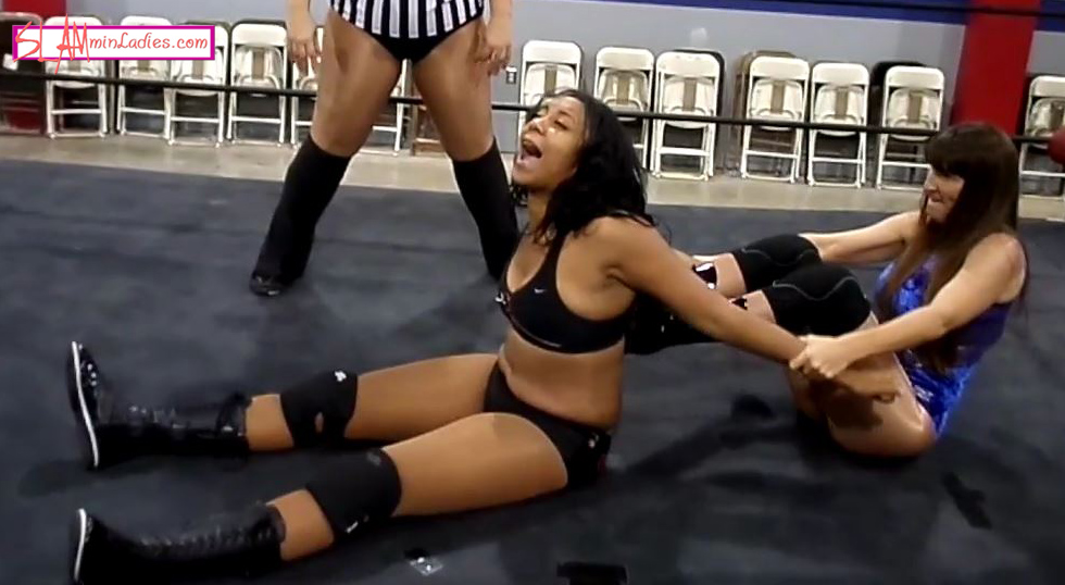 It's up to the veteran Sin-D to show these new girls how it's done and she has a perfect subject to work with in Devyn. The stipulation is even in her favor as all she has to do is survive for 10 minutes to earn a title shot. The taller Devyn woman-handles Sin-D at first, just bullying her around the ring and looking for a fast finish to squash Sin-D's championship dreams. However, it doesn't take long for Sin-D to turn the tables, aided by referee Miss Rachel who doesn't seem to be doing a great job of calling this one down the middle. Sin-D strangles Devyn with her hair, stomps on her feet, and blatantly chokes her, taking advantage of Rachel's slow, almost non-existent count. A Surfboard stretch has Devyn screaming, as does the pulling of her hair, and her arms being twisted in the ropes. It's enough to have her call for a restart to the match, with Rachel doing her job this time. More dirty tactics go un-policed and one wrestler finds herself having to accept defeat, with her only satisfaction coming from some post-match revenge.