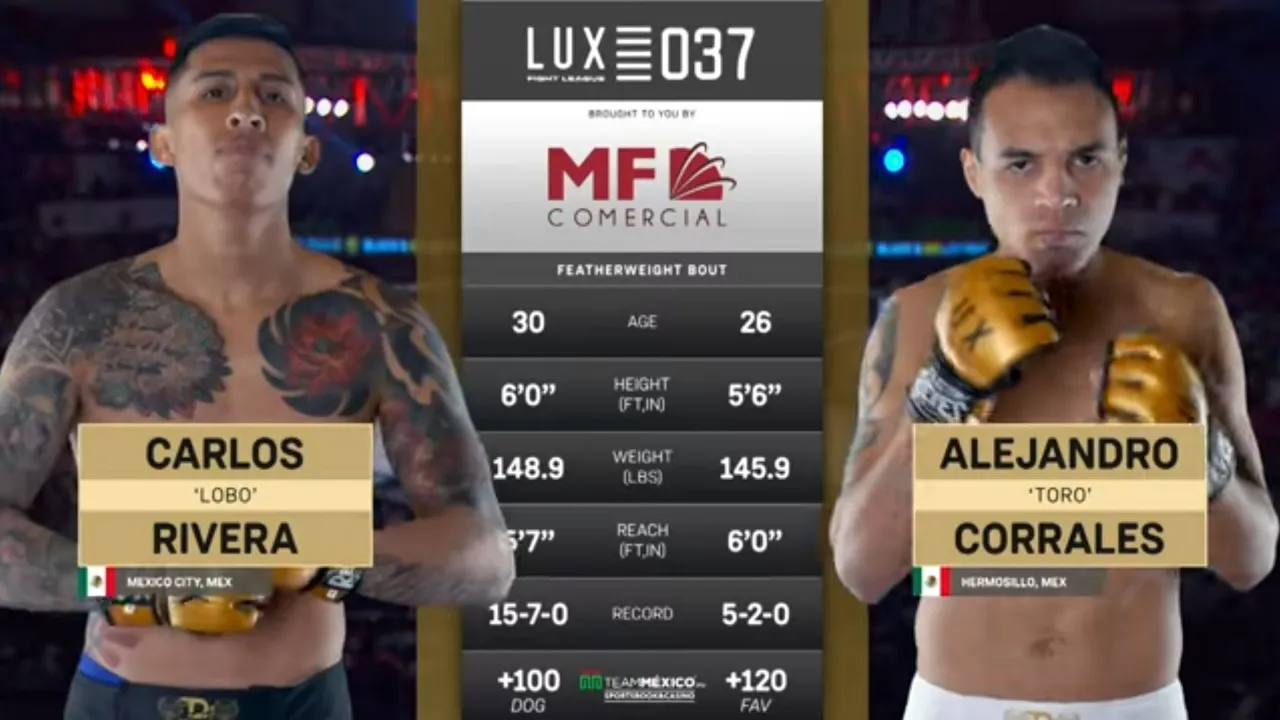 ¡EL TORO IMPONE SU PODER! Alejandro Corrales derrota a Carlos "Lobo" Rivera por decisión unánime | LUX Fight League ¡Una guerra de estrategia, fuerza y corazón! Alejandro “Toro” Corrales dominó cada round frente a un aguerrido Carlos “Lobo” Rivera, llevándose una merecida victoria por decisión unánime en una pelea que tuvo de todo. 🔥 Técnica, resistencia y ferocidad se encontraron en esta batalla de alto nivel en la jaula de LUX Fight League — la mejor liga de MMA de Latinoamérica. ⚖️ Mira cómo “El Toro” impuso su estilo y se abrió camino hacia la victoria. 📲 Suscríbete y revive más peleas inolvidables del mejor talento latino. #LUXFightLeague #ToroCorrales #LoboRivera #MMA #DecisionUnánime #LuchaLatina --------------------------------------------------------------------------------------------------------------------------- 👉Únete a la comunidad de Lux Fight League: Vive la emoción de la MMA con combates poderosos, análisis profundos y contenido exclusivo: https://luxfightleague.com/ ¡Explora nuestros eventos! ➡️https://luxfightleague.com/eventos/ 📲Mantente Conectado para Más: 📲 Síguenos en las redes sociales 👇 📲 Instagram: https://www.instagram.com/luxfightleague 📲 Facebook: https://www.facebook.com/luxfightleague 📲 Twitter: https://www.twitter.com/luxfightleague 📲 TikTok: https://www.tiktok.com/@luxfightleague 💻 Official Website: https://www.luxfightleague.com