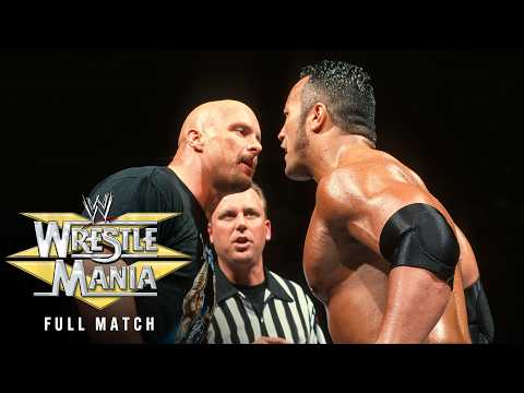 For the first time at WrestleMania, WWE Champion The Rock goes one-on-one with "Stone Cold" Steve Austin in this classic matchup. Find the latest Superstar gear at WWEShop: --------------------------------------------- Check out these other channels! --------------------------------------------- WWE: WWE Español: WWE Arabic: WWE NXT: WCW: WWE Music: UpUpDownDown: Celtic Warrior Workouts: --------------------------------------------- Subscribe to our Podcasts! --------------------------------------------- Raw Recap: Six Feet Under with The Undertaker: What Do You Wanna Talk About? With Cody Rhodes: What's Your Story? With Steph McMahon: ------------------------------------ WWE on Social Media ------------------------------------ X: Facebook: Instagram: TikTok: ------------------------------------