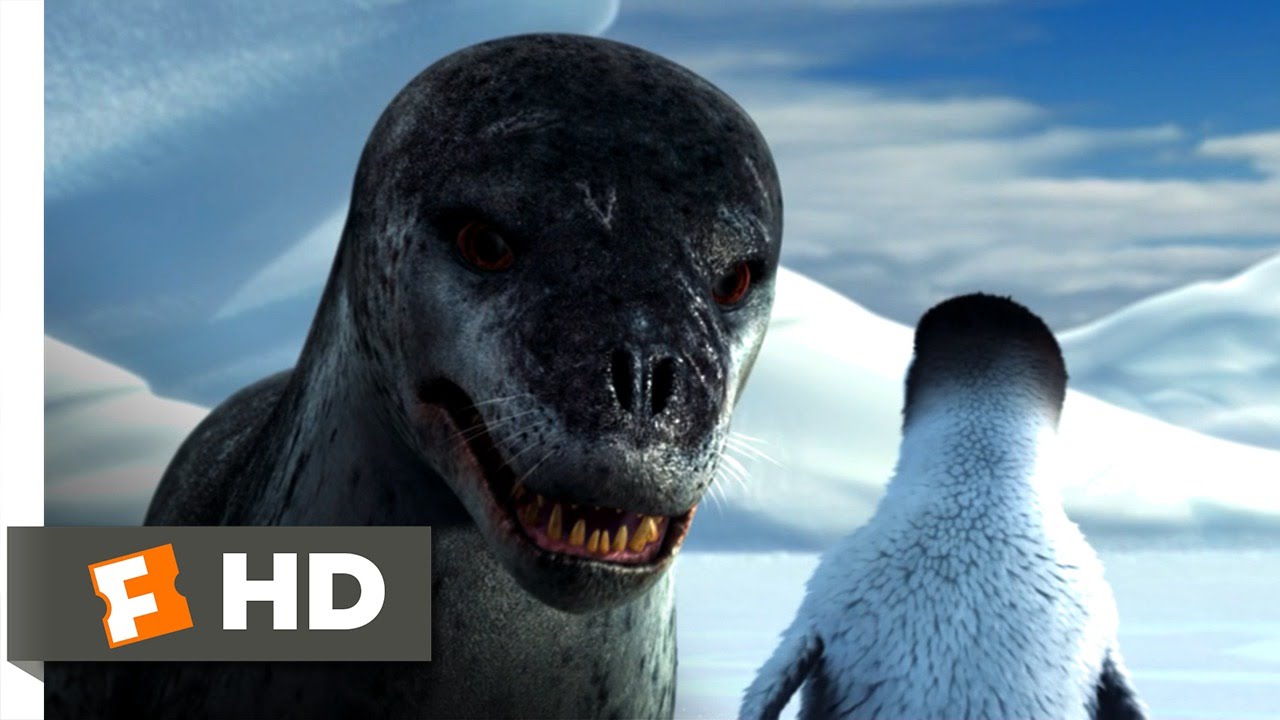 Happy Feet movie clips: http://j.mp/1ziG1Lj BUY THE MOVIE: http://bit.ly/2cemRY4 Don't miss the HOTTEST NEW TRAILERS: http://bit.ly/1u2y6pr CLIP DESCRIPTION: Mumble (Elijah Wood) narrowly escapes being eaten by a hungry leopard seal (Roger Rose). FILM DESCRIPTION: In the world of the emperor penguin, a simple song can mean the difference between a lifetime of happiness and an eternity of loneliness. When a penguin named Mumble is born without the ability to sing the romantic song that will attract his soul mate, he'll have to resort to some fancy footwork by tap dancing his way into the heart of the one he loves. Directed by Babe mastermind George Miller, Happy Feet tells the tale of one penguin's quest for love, and features an all-star cast of vocal talent that includes Robin Williams, Hugh Jackman, Elijah Wood, Nicole Kidman, and Brittany Murphy. CREDITS: TM & © Warner Bros. (2006) Cast: Carlos Alazraqui, Lombardo Boyar, Jeffrey Garcia, Johnny A. Sanchez, Robin Williams, Elijah Wood, Roger Rose Directors: Warren Coleman, George Miller, Judy Morris Producers: Bruce Berman, Graham Burke, Warren Coleman, Matthew Ferro, Dana Goldberg, Philip Hearnshaw, Ed Jones, Hael Kobayashi, Bill Miller, George Miller, Doug Mitchell, Judy Morris, Michael Twigg, Martin Wood Screenwriters: Warren Coleman, John Collee, George Miller, Judy Morris WHO ARE WE The MOVIECLIPS channel is the largest collection of licensed movie clips on the web. Here you will find unforgettable moments, scenes and lines from all your favorite films. Made by movie fans, for movie fans. SUBSCRIBE TO OUR MOVIE CHANNELS: MOVIECLIPS: http://bit.ly/1u2yaWd ComingSoon: http://bit.ly/1DVpgtR Indie & Film Festivals: http://bit.ly/1wbkfYg Hero Central: http://bit.ly/1AMUZwv Extras: http://bit.ly/1u431fr Classic Trailers: http://bit.ly/1u43jDe Pop-Up Trailers: http://bit.ly/1z7EtZR Movie News: http://bit.ly/1C3Ncd2 Movie Games: http://bit.ly/1ygDV13 Fandango: http://bit.ly/1Bl79ye Fandango FrontRunners: http://bit.ly/1CggQfC HIT US UP: Facebook: http://on.f