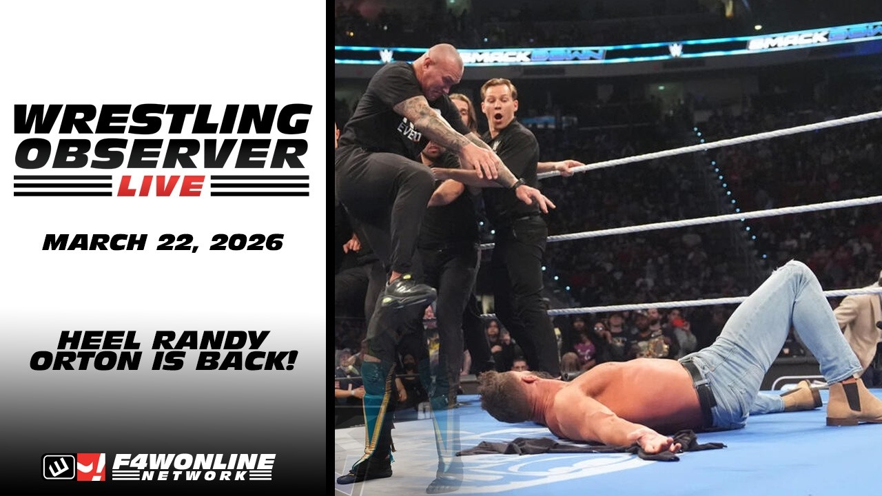 Andrew Zarian is back with another episode of Wrestling Observer Live Sunday edition, breaking down the latest pro wrestling news. This week, I talk about Randy Orton's heel turn over the last two weeks on SmackDown, leading up to WrestleMania. I explain why this is one of the better angles they've done in a while and how it will help the match at Mania. I also talk about Toni Storm being off TV indefinitely, what pivot AEW will make, and whether it will lead to Mercedes Mone coming back as a Babyface. I also elaborate on my report this week that Tama Tonga was fined for filming backstage footage at SmackDown last week. Plus, the passing of Dennis Condrey, Dynamite Ratings, and a Ronda Rousey update—all this and more! #wrestlemania #randyorton #aew #Tonistorm #midnightexpress #aewcollision #wwesmackdown Grab your Dave Meltzer year books Don't have access to this video? Sign up now! The F4W Live tier now has Dave Meltzer live on Wrestling Observer Radio with Bryan Alvarez. You can see the Wrestling Observer Newsletter with a subscription here: Grab some awesome T Shirts here: #wrestlingobserver