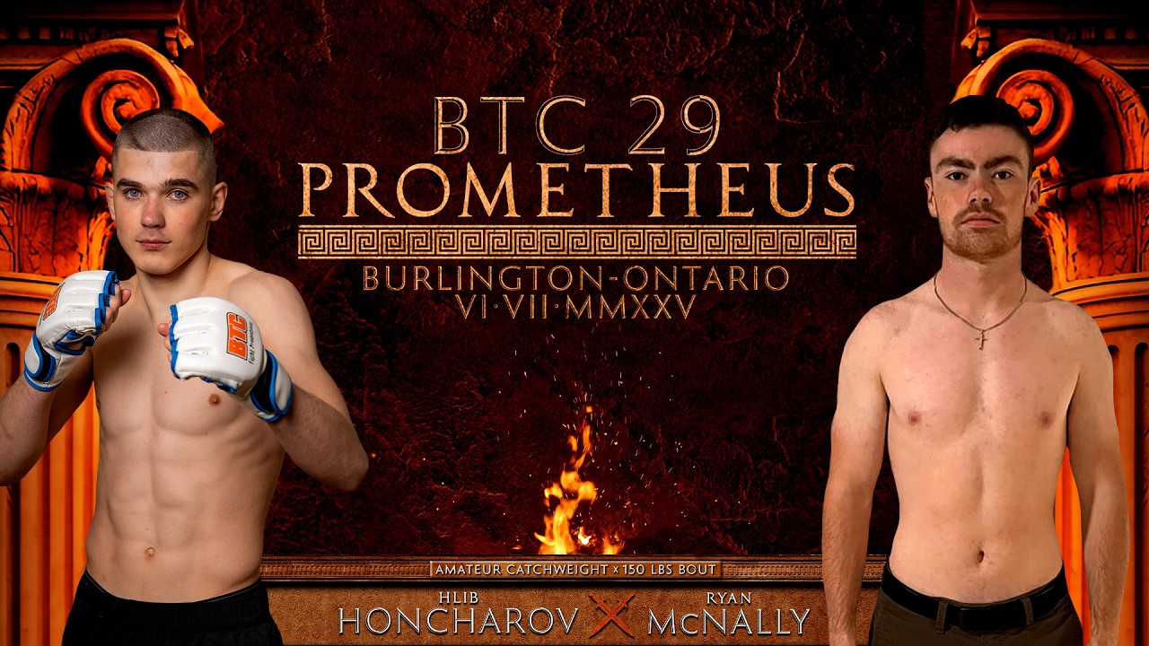 BTC 29: Prometheus Hlib Honcharov vs. Ryan McNally Venue: Central Arena City: Burlington, Ontario Date: Sat June 7th, 2025 Website: https://btcfight.ca Instagram: https://instagram.com/btcfight FaceBook: https://facebook.com/btcfight TikTok: https://tiktok.com/@btcfight Twitter: https://twitter.com/btcfight