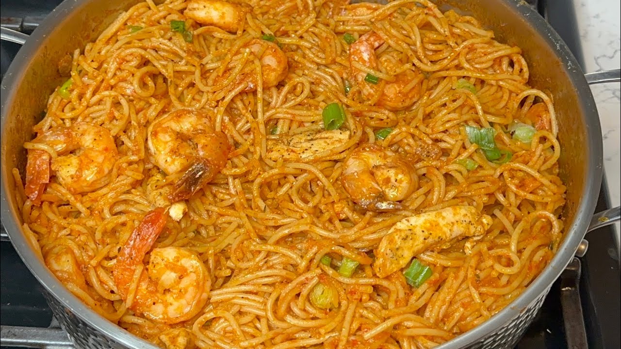 Thank you for watching todays video. List of ingredients used 2 packs of spaghetti 6 medium sized carrots 2 red bell peppers 2 red onion 1 cup of oil Spring onion 200g chicken breast 1 pound of shrimp Seasoning ( add to taste ) Chicken seasoning Curry powder Thyme Smoked Paprika Garlic Powder Ginger Garlic Black pepper Onion powder Related videos Carrot jollof rice 👉🏽 •Howtocookjollofricewithouttomatopas... Carrot stew 👉🏽 •Howtocookstewwithouttomatoes|Carrot... Stir fry macaroni 👉🏽 •Macaroni&Chickenstirfrythewholefami... Jollof rice •HowtocookJollofRicelikeapro!Igua...