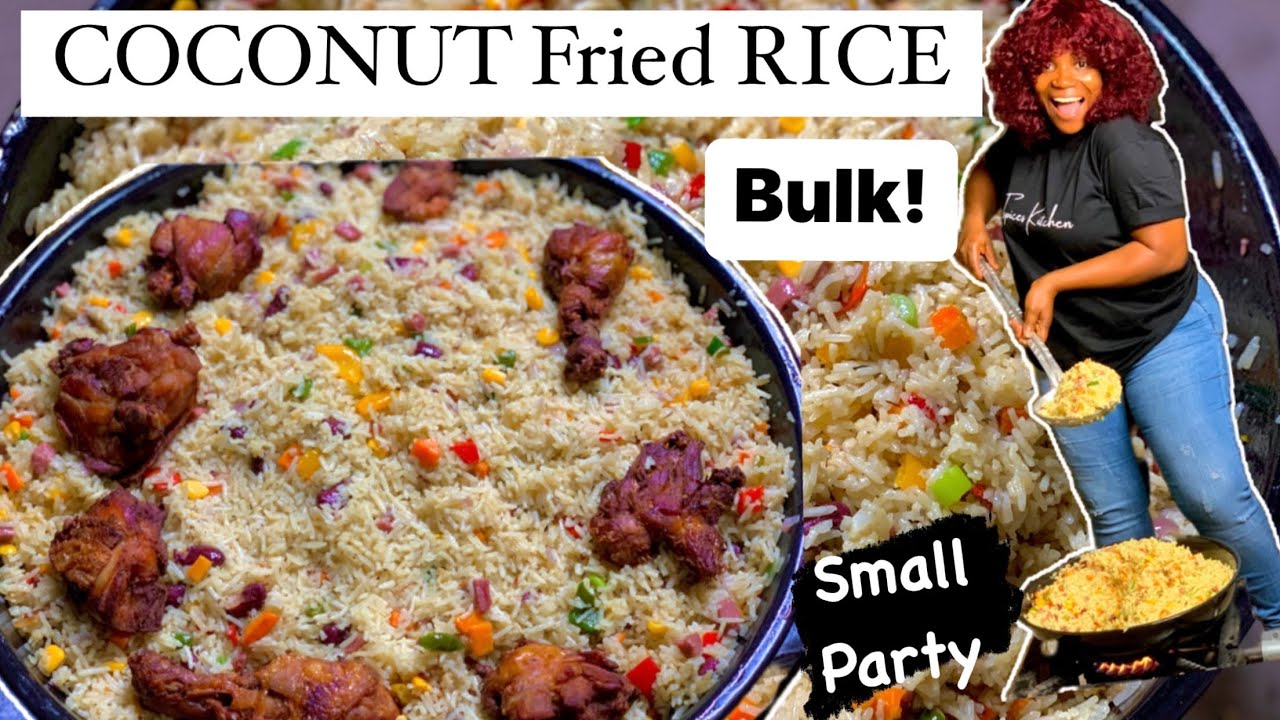 This is how to make the easiest Nigerian coconut Fried Rice from the beginning! For your Christmas parties and get togethers INGREDIENTS *10 cups Rice ( I used the peak milk cups) *3-4 big Coconuts *1 -2 Kilo chicken (use as much as possible) *5 Medium size Onions (dice & slice) *5 pieces bayleaf *1 -2 big can Sweet corn *1-2 can Red kidney beans *4 Medium size green peppers *4 Medium size red pepper *2 Big size Yellow pepper *4 stalk spring onions *3 tablespoon ginger and garlic paste *5-7 medium Size carrot (diced) *1 Cup Oil ( vegetable or coconut oil) *8-10 seasoning cubes (to taste pls) *1/2 Cup Salt (to taste pls) 2 Tbspn curry powder *2 Tbspn thyme BREAK DOWN For Coconut milk 3 Medium size Coconut, blend with: 2 cup water To boil chicken 1 kilo chicken *4 Seasoning cubes ( to taste) *1 & 1/2 tablespoon salt (to taste) *1 tablespoon curry *1 tablespoon thyme *2 bay leaf *1 big Scotch bonnet pepper *1 full table spoon ginger & garlic paste More vegetable oil for frying Also let me know if you have any question or need clarity on any of the Recipe đđ€ Pls SUBSCRIBE to our channel now đ /@tspiceskitchen Watch our other step by step video đ Easiest SAMOSA & Springroll Wraps at home/ Step by step /2 Ways âąEasiestSAMOSA&SpringrollWrapsathome/... Learn how to make Greek yogurt at home đ âąHomemadeGREEKYOGURTinjust3STEP(Too... How to make SAMOSA at home |Step by Step | Easy Recipe âąHowtomakeSAMOSAathome|StepbyStep|... How to make CARROT OIL for SKIN LIGHTENING| 2 ingredients| Best DIY âąHowtomakeCARROTOILforSKINLIGHTENING... Cooking Hack: How to make Smooth TOMATO PUREE WITHOUT BLENDER âąCookingHack:HowtomakeSmoothTOMATOPU... Soft & Milky BUN BREAD without OVEN for Beginners âąSoft&MilkyBUNBREADwithoutOVEN|forB... We upload new videos every week Say "Hi" & Send your tryouts on: INSTAGRAM: /tspices_kitchen TWITTER: /tspiceskitchen FACEBOOK: /tspiceskitchen ---------------------------------------------- Beloved, I pray that you may prosper in all things and be in health, just