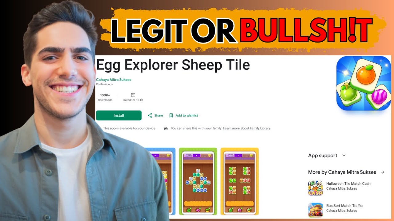 In this video, I break down Egg Explorer Sheep Tile to find out whether it’s a legit money‑earning game or just a fake app that wastes your time. Many match‑3 puzzle games promise cash rewards for playing, but do they really pay real money or are the reward claims just illusions? I’ll walk you through how the game mechanics work, what the reward system actually looks like, and whether you should expect any real payouts. If you’re thinking “Can I make money watching ads and playing Egg Explorer Sheep Tile?”, this honest review tells you what most players experience before you install it. Tags/Keywords: Egg Explorer Sheep Tile review, Egg Explorer legit or scam, earn money playing games, fake cash game app, puzzle game rewards, mobile earning apps, scam warning