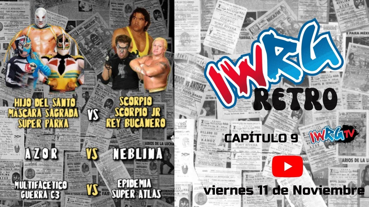 IWRG presenta IWRG Retro, con los mejores encuentros a través de las décadas, desde la Arena Naucalpan. 00:00 ESPECIAL: Guerra C3 y Multifacético vs Súper Atlas y Epidemia 16:16 SEMIFINAL: Azor vs Neblina 36:16 ESTELAR: Hijo del Santo, Máscara Sagrada y Súper Parka vs Scorpio Sr., Scorpio Jr. y Rey Bucanero Somos IWRG, la Primera Fuerza de la Lucha Libre Mexicana