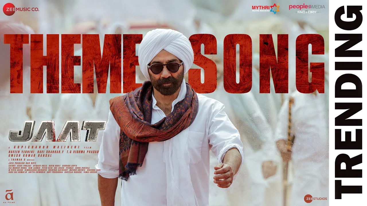 👉🏻 SUBSCRIBE to Zee Music Company - https://bit.ly/ZeeMusicCo सबसे प्यारी, जाट की यारी. जाट से दुश्मनी, पड़ेगा भारी Presenting the powerful #JaatThemeSong To Stream & Download Full Song: Spotify - https://spoti.fi/4ctFfqw JioSaavn - https://bit.ly/4cnFD9V Gaana - https://bit.ly/4js6UdI iTunes - https://apple.co/4js5xM6 Apple Music - https://apple.co/4js5xM6 Amazon Prime Music - https://amzn.to/44f9cs0 Hungama - https://bit.ly/4ciUXEw YouTube Music - https://bit.ly/3E1dsAW Song: JAAT - Theme Song Singer: Amrit Maan Music: Thaman S Lyricist: Amrit Maan Programmed & Arranged by: Thaman S Acoustic Drums & Electric Rhythm: Thaman S Live Percussions: Anandan Sivamani Drum & Beat EDM Works: Beyond Sound (T) Additional Programming: Shashank Osho V, Hari S R Electric Guitars: Subashree Recorded at Prasad Studios (HYD) & V studios (CHN) by: Osho V & Hari Vocal Supervision: Adviteeya Mix and mastered by Shadab Rayeen at New Edge (Mumbai) & New Edge (CaL) New Edge Team: Anup, Prasad, Sohamm, Rupam, Kundan Musicians Co Ordinator: Manikandan K Studio Manager: Seenu & Sridhar Studio Assistance: Raju, Kannan, Lingam & Pawan Cast: Sunny Deol, Randeep Hooda, Vineet Kumar Singh, Regina Cassandra, Saiyami Kher, Swarupa Ghosh & Others Story-Screenplay-Direction: Gopichandh Malineni Producers: Naveen Yerneni, Ravi Shankar Yalamanchili, TG Vishwa Prasad, Umesh KR Bansal Production House: Mythri Movie Makers, People Media Factory & ZEE Studios Co-Producer: Dote Jaya Prakash Rao CEO: Cherry Cinematographer: Rishi Punjabi Editing: Navin Nooli Production Designer: Avinash Kolla Fights: Ram-Laxman, V Venkat, Peter Hein, Anal Arasu Dialogues: Saurabh Gupta, Sai Madhav Burra Song Choreographer: Ganesh Acharya Chief Executive Producer: M. Baba Sai Kumar Executive Producer: Chembolu Sai Aditya Writers: M Vivek Anand, Nimmagadda Srikanth, Srinivas Gavireddy, Mayukh Adithya, Krushna Hari Line Producer: Inturi Balakrishna Chief-Co Director: Gulabi Sri