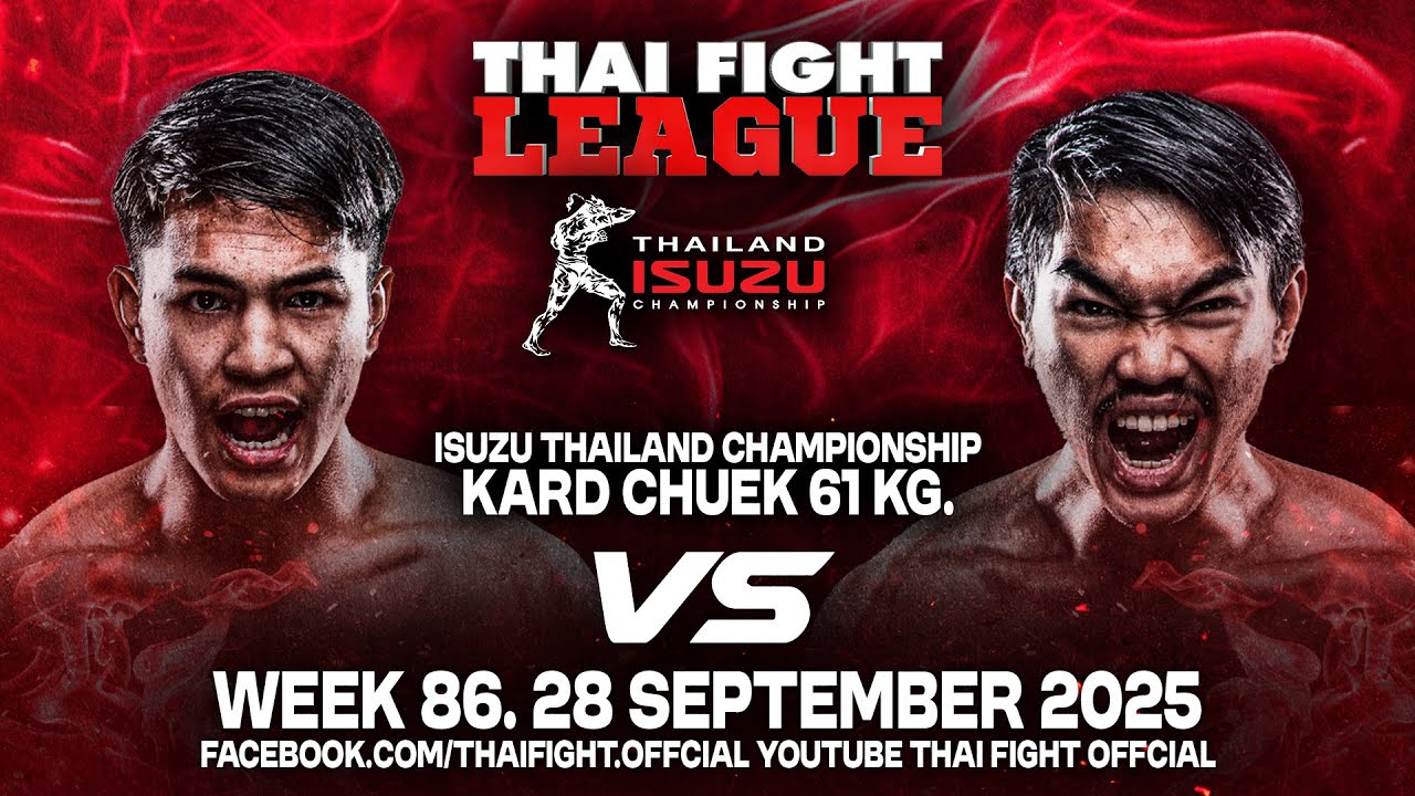 เวทีจะเดือดไปกับการแข่งขันรอบรองชนะเลิศ ISUZU THAILAND CHAMPIONSHIP 2025 แข่งขันแบบน็อคเอาท์ แพ้ตกรอบทันที ทีมภาคเหนือ ตัดเชือกกับ ทีมภาคอีสานใต้ และ ทีมภาคอีสานเหนือ ตัดเชือกกับ ทีมภาคกลาง มาลุ้นกันว่า ทีมภาคใดจะได้เข้าชิงถ้วยพระราชทานพระบาทสมเด็จพระเจ้าอยู่หัว ขอเชิญมาร่วมเชียร์ ร่วมลุ้นให้เวทีสะเทือน ไทยไฟท์ ลีก #86 🗓️ วันอาทิตย์ 28 กันยายน 2568 ⏱️ เวลา 18.00 - 20.00 น. 📍 ณ เวิลด์ สยาม สเตเดียม, ตะวันนา, บางกะปิ 🎥 ถ่ายทอดสดทางช่อง 8 (กดเลข 27) 🇹🇭 ไลฟ์สด youtu.be/N6jECnT9dFA 🇬🇧 LIVE youtu.be/1u8TnPhFRJ8 . #ThaiFightLeague #THAIFIGHT #KardChuek #ไทยไฟท์ลีก #ไทยไฟท์ #ไทยไฟท์ล่าสุด #muaythai #MuayBoran #มวยช่อง8 . Facebook : Thai Fight : https://www.facebook.com/thaifight.official/ Instagram : https://www.instagram.com/thaifight_official/ Twitter : https://twitter.com/THAIFIGHT_TWT Website : http://www.thaifight.com/ Tiktok : https://www.tiktok.com/@thaifight.official