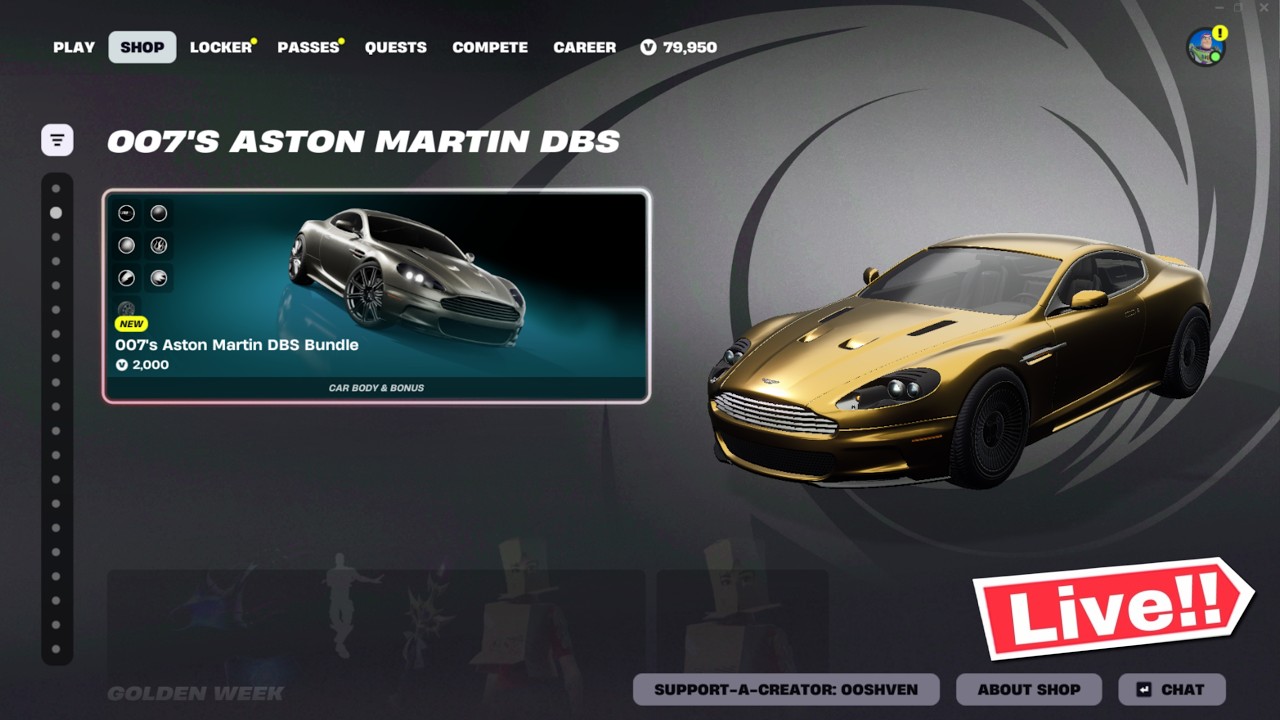 đŽ*NEW* FORTNITE 007'S ASTON MARTIN DBS! ITEM SHOP TODAY! (Chapter 7 LIVE)