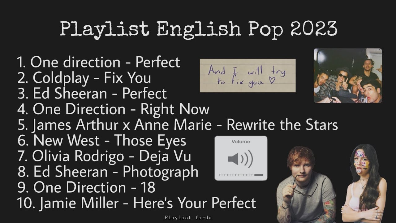 Playlist English Pop 2023 One Direction, Coldplay, Ed Sheeran, Olivia Rodrigo, James Arthur, etc.
