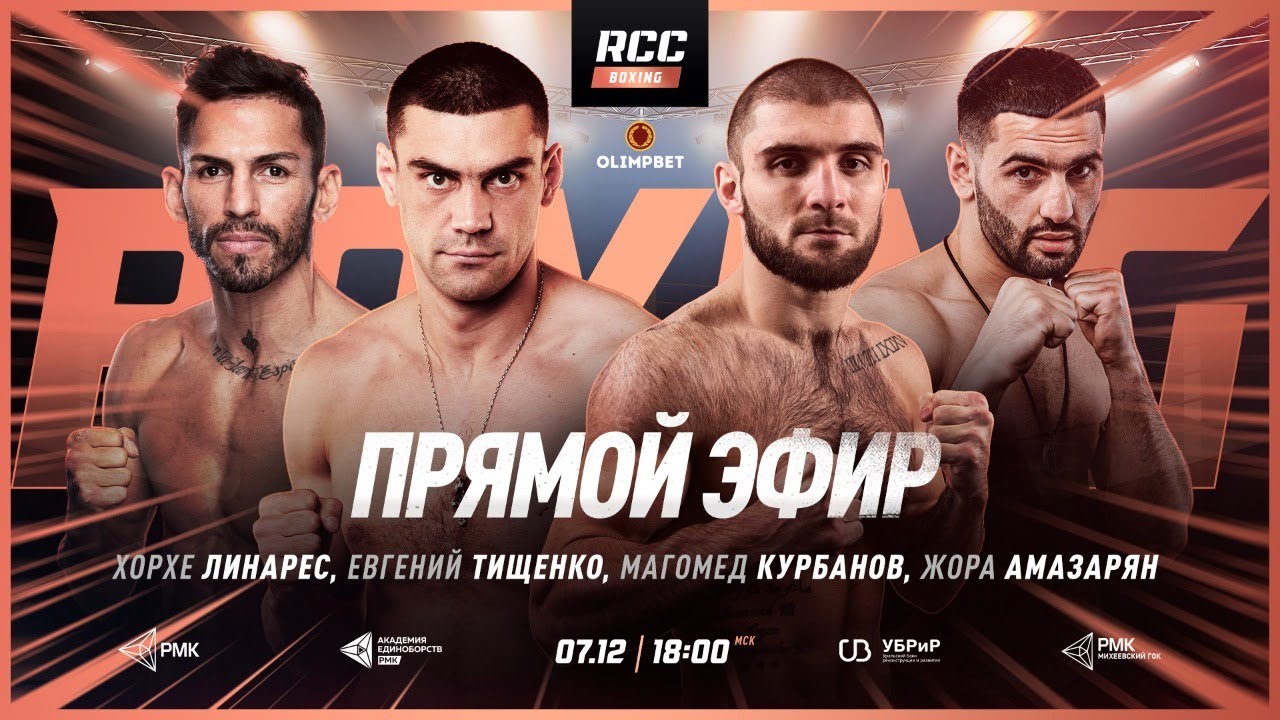 11 декабря в Екатеринбурге на пятитысячной арене ДИВСа состоится заключительный в этом году Вечер бокса от RCC Boxing Promotions. В главном бою российская звезда и пятый номер мирового рейтинга в первом среднем весе Магомед Курбанов выйдет в ринг против сильнейшего боксера Венесуэлы и сумасшедшего нокаутера Хоана Гонсалеса. В со-главном бою легенда бокса и экс-чемпион мира в трех весовых категориях Хорхе Линарес встретится с амбициозным и голодным до побед Жорой Амазаряном. Олимпийский чемпион Евгений Тищенко (10-1) и экс-претендент на титул чемпиона мира IBF Артур Манн (19-2) встретятся в главном карде вечера Организатор турнира RCC Boxing Promotions https://vk.com/rccboxing https://www.instagram.com/rccboxing/ https://www.facebook.com/rccboxing/ https://twitter.com/rcc_sport http://rccboxing.pro/ На бойцах одежда RCC Sport https://www.instagram.com/rcc_sport/ https://www.facebook.com/rccsport https://rccsportwear.com #RCC #РМК