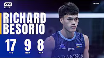 WELCOME TO THE BESORIO BLOCK PARTY 𧱠Richard Besorio delivered 18 points highlighted by a massive nine blocks and eight attacks, but the Adamson Soaring Falcons fell short against the UE Red Warriors in the UAAP Season 88 men's volleyball tournament. #UAAPSeason88 #LegendsStartHere #StrengthInMotionHopeInAction Subscribe to One Sports channel! http://bit.ly/OneSportsPHL Website: https://www.onesports.ph/ Facebook:   / onesportsphl  X:   / onesportsphl  Instagram:   / onesportsphl  Tiktok:   / onesportsphl  Reddit:   / onesportsphl