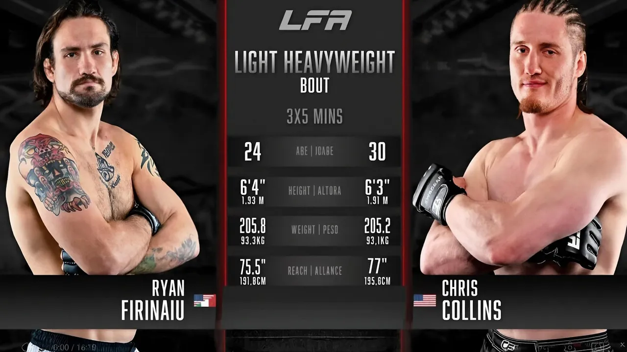 Legacy Fighting Alliance MMA: Surging light heavyweight Ryan Firinaiu took on Chris Collins at LFA 227, Feb 27, 2026. #fullfight #LFAMMA #UFC Watch LIVE LFA MMA Events VICE TV in the USA https://www.vicetv.com/en_us LFA has sent over 330 fighters to the UFC - more than any other MMA promotion - witness Kamaru Usman, Sugar Sean O'Malley, Henry Cejudo, Kevin Holland, Brandon Moreno, Brian Ortega, Derrick Lewis and many more before they were UFC fighters!