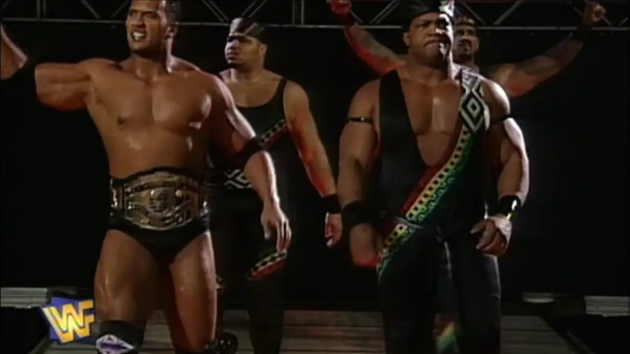 Nation member The Rock takes on Vader while Stone Cold taunts him. Rocky still has Steve Austin's property, the IC Title. RAW 12/1/1997