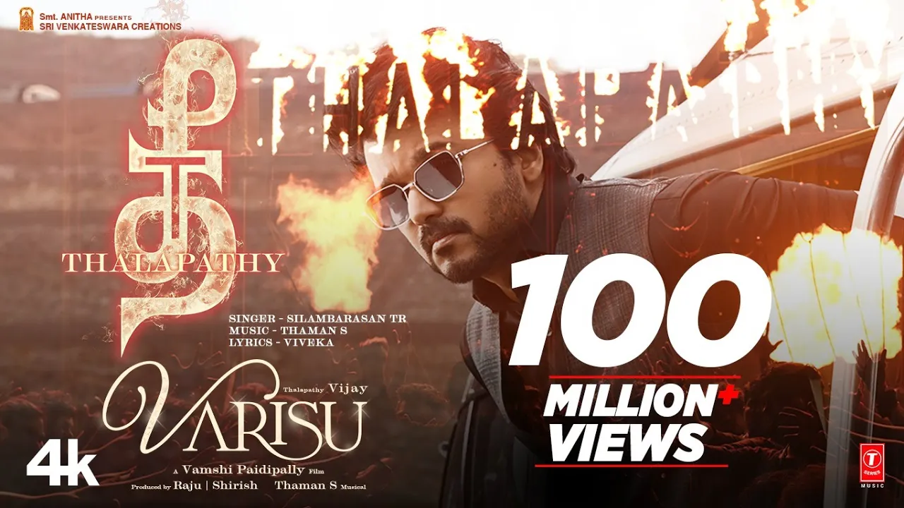 Here is the most awaited second single "Thee Thalapathy" lyric video of Thalapathy Vijay’s #Varisu. Film Credits: Director: Vamshi Paidipally Producer: Raju, Shirish Banner: Sri Venkateswara Creations Co:Producers: Sri Harshith Reddy, Sri Harshitha Composed by Thaman S Star Cast: Vijay, Rashmika Mandanna, R Sarathkumar, Prabhu, Prakash Raj, Shaam, Srikanth, Khushbu, Yogi Babu, Jayasudha, Sangeetha Krish, Samyuktha Shanmughanathan, Nandini Rai, Ganesh Venkatraman, Sriman, VT Ganesan, John Vijay, Bharath Reddy, Sanjana and others. Story-Screenplay: Vamshi Paidipally, Hari & Ahishor Solomon Dialogues, Additional Screenplay, Lyrics: Vivek Dop: Karthik Palani Editor: Praveen KL Production Design: Sunil Babu & Vaishnavi Reddy VFX: Yugandhar Action: Ram Laxman, Peter Hein & Dhilip Subbarayan Choreographer: Jani Master Costume Designers: Deepali Noor, Akangshee Chopra (Rashmika Mandanna) Co:Director: Rambabu Kongarapi Makeup: P Nagarajan Pro: Riaz K Ahmed Publicity Design: Gopi Prasannaa Stills: D Maneksha Production Controller: Kishore Surapaneni & KTS Swaminathan Executive Producer: B Sreedhar Rao & R Udhayakumar Associate Editor: M Sandeep Associate Cinematographer: Lokesh Ilayaa Second camera operator: N V Reddy Assistant Cinematographers: Sarath Krishna. R, Yadhavan Subramaniam, Thiyagu G, Sandeep Bapatla & Vivian Pullan Lyrical Video Credits: Visualised & Shot by: GK Vishnu Choreographer: Sandy Art Director: K Udayakumar Editor: R Kaliavanan Action: Dinesh Subbarayan Costume Designer: Pallavi Singh, Kavitha Song Credits: Song Title: Thee Thalapathy Album/Movie: Varisu Singer: STR (Silambarasan) Programmed & Arranged By Thaman S Lyrics: Vivek Musician Credits: Arranged & Programmed by Thaman S Live Lead Drums: Thaman S Additional Percussion & Timbale: Anandan Sivamani Electric Guitar: Godfrey 28ORCHESTRA Record at STUDIO28 BANGKOK Studio Manager: Supisa Williamson Recording Engineer: THITIKORN ROYMANEE & SUTTHIPAT KUNAKORN Orchestra Manager: Thitanon Kollasathsenee
