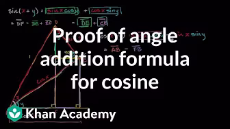 Practice this lesson yourself on KhanAcademy.org right now: https://www.khanacademy.org/math/trigonometry/less-basic-trigonometry/angle-addition-formulas-trig/e/trig_addition_identities?utm_source=YT&utm_medium=Desc&utm_campaign=Trigonometry Watch the next lesson: https://www.khanacademy.org/math/trigonometry/less-basic-trigonometry/angle-addition-formulas-trig/v/cosine-angle-addition-2?utm_source=YT&utm_medium=Desc&utm_campaign=Trigonometry Missed the previous lesson? https://www.khanacademy.org/math/trigonometry/less-basic-trigonometry/angle-addition-formulas-trig/v/sin-angle-addition?utm_source=YT&utm_medium=Desc&utm_campaign=Trigonometry Trigonometry on Khan Academy: Big, fancy word, right? Don't be fooled. Looking at the prefix, tri-, you could probably assume that trigonometry ("trig" as it's sometimes called) has something to do with triangles. You would be right! Trig is the study of the properties of triangles. Why is it important? It's used in measuring precise distances