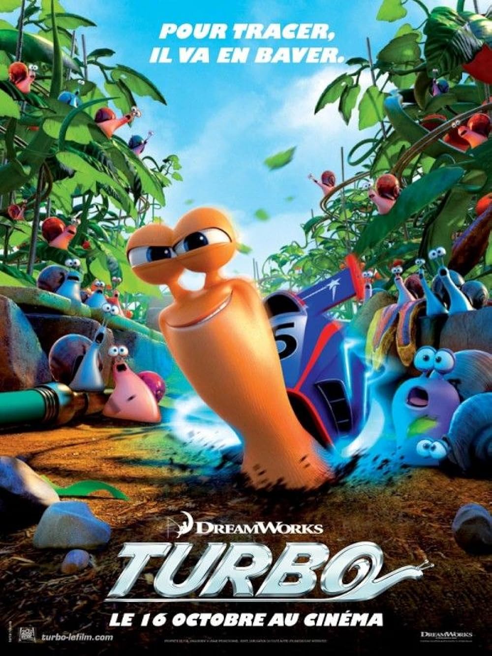 Turbo. No dream is too big and the dreamer too small. Plot is simple everyone gets that from the trailer. A garden snail accidentally falls into NOS engine and turns into a super fast snail. But the movie took it to a whole new level. The animation and effects were brilliant. Coming to the characters, The two brothers with a dream with their Taco shop. Turbo with a dream of going faster and it never gives up. The adventure starts when they both meet. The Whiplash and his crew members were awesome and funny. The way they do things and you people better watch out for White shadow. Winning the Indy race is not too simple for Turbo even with its ability. The 3D is really great especially when the race starts. The viewers will be on the road along with Turbo. Its pure fun. Adventure, Comedy, Relation between brothers, friendship and what not. This movie has everything. Its all about making dreams come true. Another epic from Dreamworks. 10/10.