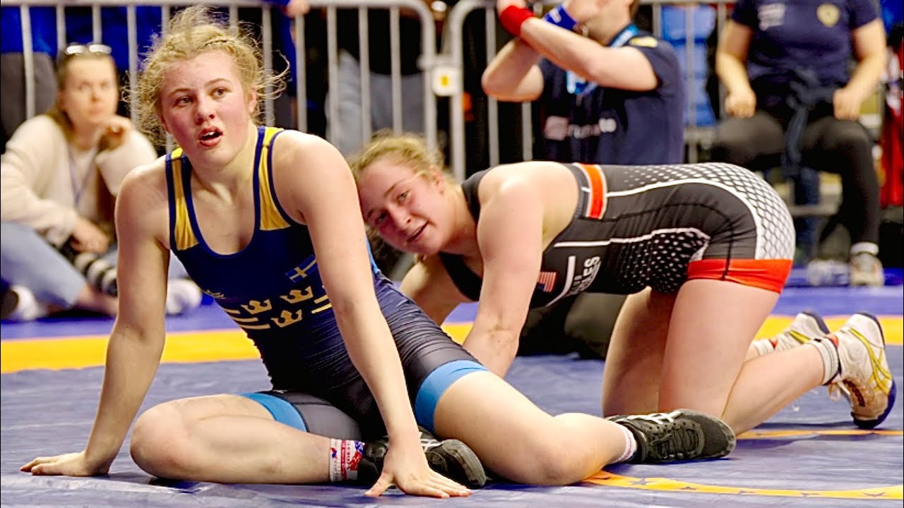 U17 Eve Skrocki (USA) vs Tilda Jivenius (SWE) 65kg. Womens girls youth wrestling. B-cam-man