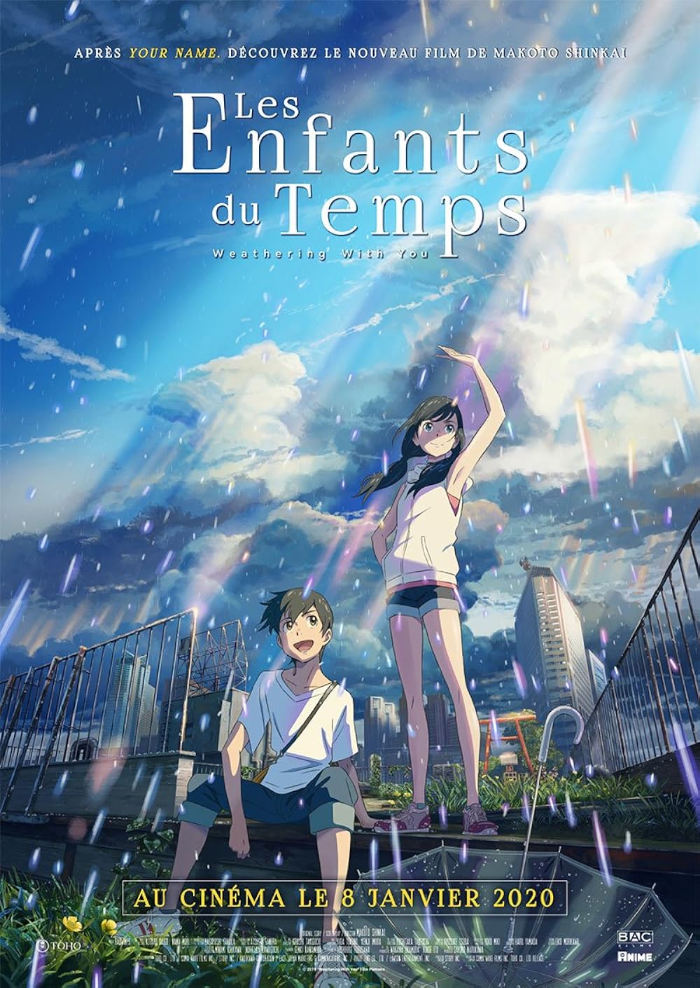 Weathering With You. From Makoto Shinkai, director of the smashing hit Your Name comes a story following a young runaway who flees to Tokyo to start a new life. He befriends a girl with a tokubetsu gift of Weather manipulation and the story progresses from there. First of all the soundtrack was top notch. Radwimps who also composed and wrote music for Your Name were pretty much just as good. The way the music was used makes the scenes more engaging. The animation was also what should be expected from a Makoto Shinkai film. It was beautiful. Ohhh my, that's intro scene was kirei. The plot however felt a little bit messy. The first two acts were very satisfying, and the chemistry between the characters were what made the story really interesting. Hina and Hodaka were really cool together. All the other characters were really interesting and engaging characters. The direction of the third act really felt all over the place. It's hard to explain. Your name's ending was a bit similar, but was felt more complete. The film also had no major twists. There was lots of tension though. The voice acting was really good. The actors are all unknowns but really sounded good as their characters. This film was original. With many bad Disney CGI remakes out there, I'd rather watch this a hundred times more. It brings us a new story with engaging characters. End of review.. 7.5/10 PS: there were some amazing cameos :) Sorry for my bad review. Enjoy.