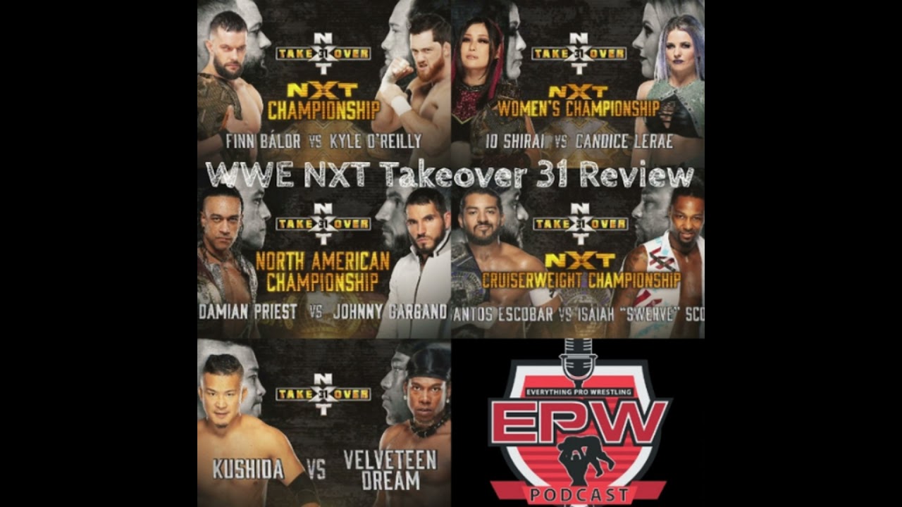 Welcome to Everything Pro Wrestling. Everything Pro Wrestling is a show by the fans for the fans. NXT returns this weekend, with NXT TakeOver 31, marking the 31st edition of the ever popular event. The event will be recorded from Full Sail University, the usual home of NXT, and will feature only selected personnel to make up with the audience in attendance. DATE: October 4, 2020 at 7:00 PM ET (Preshow at 6:30 PM ET) LOCATION: Full Sail, Winter Park, Florida AVAILABLE ON: WWE Network (first month free for new subscribers) NXT Takeover 31 CARD NXT CHAMPIONSHIP Finn Balor (c) vs. Kyle O'Reilly NXT WOMEN'S CHAMPIONSHIP Io Shirai (c) vs. Candice LaRae NXT NORTH AMERICAN CHAMPIONSHIP Damian Priest (c) vs. Johnny Gargano NXT CRUISERWEIGHT CHAMPIONSHIP Santos Escobar (c) vs. Isaiah "Swerve" Scott KUSHIDA vs. The Velveteen Dream Source: Get 20% Off and Free Shipping with the code "EPWSHOW" at Go to Powerslam.TV Use coupon code “EPWSHOW” to get a free month when they subscribe. Follow all of our social media, podcasts, and merch accounts for the latest in pro wrestling. GRADE SCALE A+ Classic A Tremendous A- Amazing B+ Great B Good B- Solid C+ Decent C Average C- OK D+ Bad D Really Bad D- Terrible F+ Horrible F Who booked this? F- Change The Channel/Unforgettable/Unforgivable Awful Match