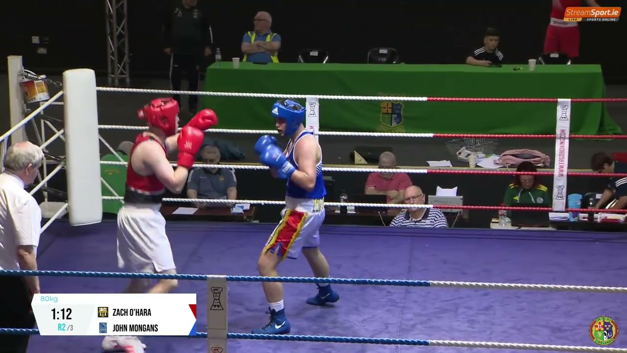 Zach O’Hara (Paulstown) and John Mongans (Rathkeale) contested this 2024 National Senior Cadet Championship 80kg semi final, streamed by @streamsport-ie7508 #boxing #boxingireland #boxer #irishboxing #IABA #olympicsport #iaba #bout #fight #titleboxing #championshipboxing #boxingnews #fightnight