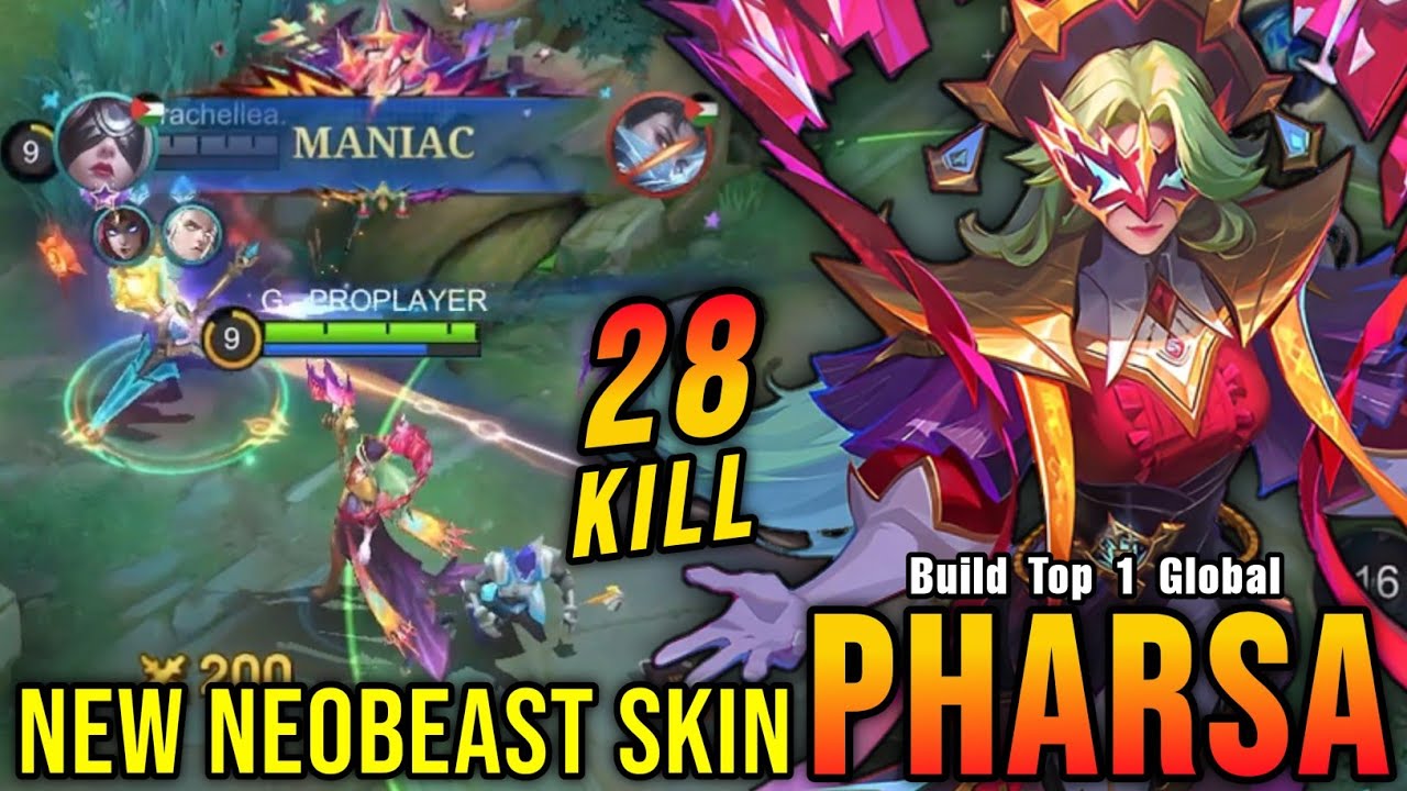 28 Kills + MANIAC!! Pharsa New NEOBEAST Skin!! - Build Top 1 Global Pharsa ~ MLBB