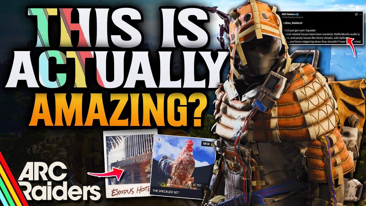 Raiders, we're back with crucial gaming news today! This video dives into the latest arc raiders update, covering the new Patch 1.24.0, which introduces the Nascosto and Scrappy Speckled cosmetic sets and addresses several bugs. We also get some exciting arc raiders news regarding the upcoming arc raiders new map and other content from Embark Studios, giving you a sneak peek at what's next for arc raiders gameplay. Don't forget to like and subscribe for more coverage! ЁЯЪА тнР Our Subreddit: https://www.reddit.com/r/CloudPlays/ ЁЯФ┤ Twitch: https://www.twitch.tv/cloudplays_yt тЭдя╕П Second Channel: https://www.youtube.com/@Cloudclipyt ЁЯз╝Cheeky Soap: https://usecheeky.com/?ref=CLOUDPLAYS ЁЯед Gamersupps: https://gamersupps.gg/Cloudplays ЁЯТ╗ Instant Gaming : https://www.instant-gaming.com/?igr=gamer-1546f6a ЁЯТмDiscord: https://discord.gg/M67vZnqKuG ЁЯУ╕Instagram: https://www.instagram.com/cloudplaysyt/ ЁЯРжTwitter: https://mobile.twitter.com/Cloudplays_yt ЁЯОеMy Tiktok: https://www.tiktok.com/@cloudplays_yt ЁЯСХNEW MERCH! : https://cloudplays.creator-spring.com/listing/mental-cloud тШБя╕ПBecome a member on the channel now!:https://www.youtube.com/channel/UC8D47Pv6mdRHgzIzxsy-q3w/join Chapters 0:00 What's to come 1:06 New skins in the store 3:24 Patch notes 5:37 New riven tide map details 6:58 Images of the map 8:23 Hidden details we missed 9:48 Top players ARC Raiders is an multiplayer, extraction adventure, set in a lethal future earth, ravaged by a mysterious mechanized threat known as ARC. In ARC Raiders, gameplay flows between the surface ruled by lethal machines, and the vibrant underground society of Speranza. Craft, repair, and upgrade your gear in the safety of your own workshop, before venturing topside to scavenge the remnants of a devastated but beautiful world. Play solo or in parties up to three, navigating the constant threat of ARC's machines and the unpredictable choices of fellow survivors. #arcraiders #arcraidersnews #arcraidersupdate