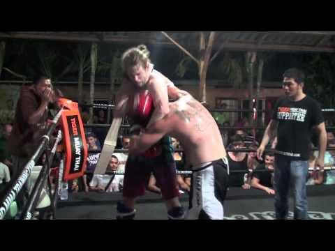 Tiger Muay Thai and MMA training camp, Phuket, Thailand held the 61st BBQ Beatdown event on the 29th of June 2013. This monthly full moon party event features all you can eat food and drink, music from DJ MGA, and smoker fights in Muay Thai, MMA, BJJ and western boxing. After the full 3 rounds of this Muay Thai smoker fight, Dan picked up the judges decision victory. http://www.tigermuaythai.com/ http://www.fightingthai.com/