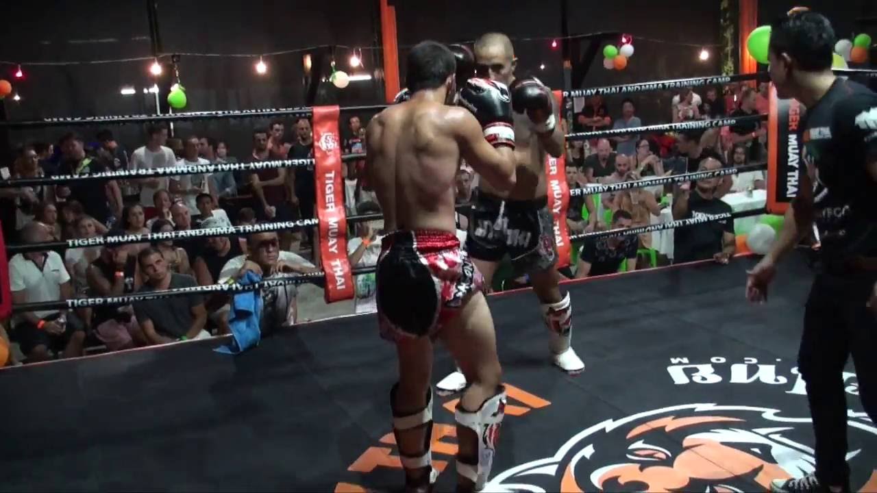 Tiger Muay Thai and MMA training camp held the 97th BBQ Beatdown event on the 25th of June 2016. This monthly full moon party event features all you can eat food and drink, music from a professional DJ, and amateur fights in Muay Thai, MMA, BJJ and western boxing. In this amateur Muay Thai bout, Can from Turkey faces Yun Long Shen from China. http://www.tigermuaythai.com/